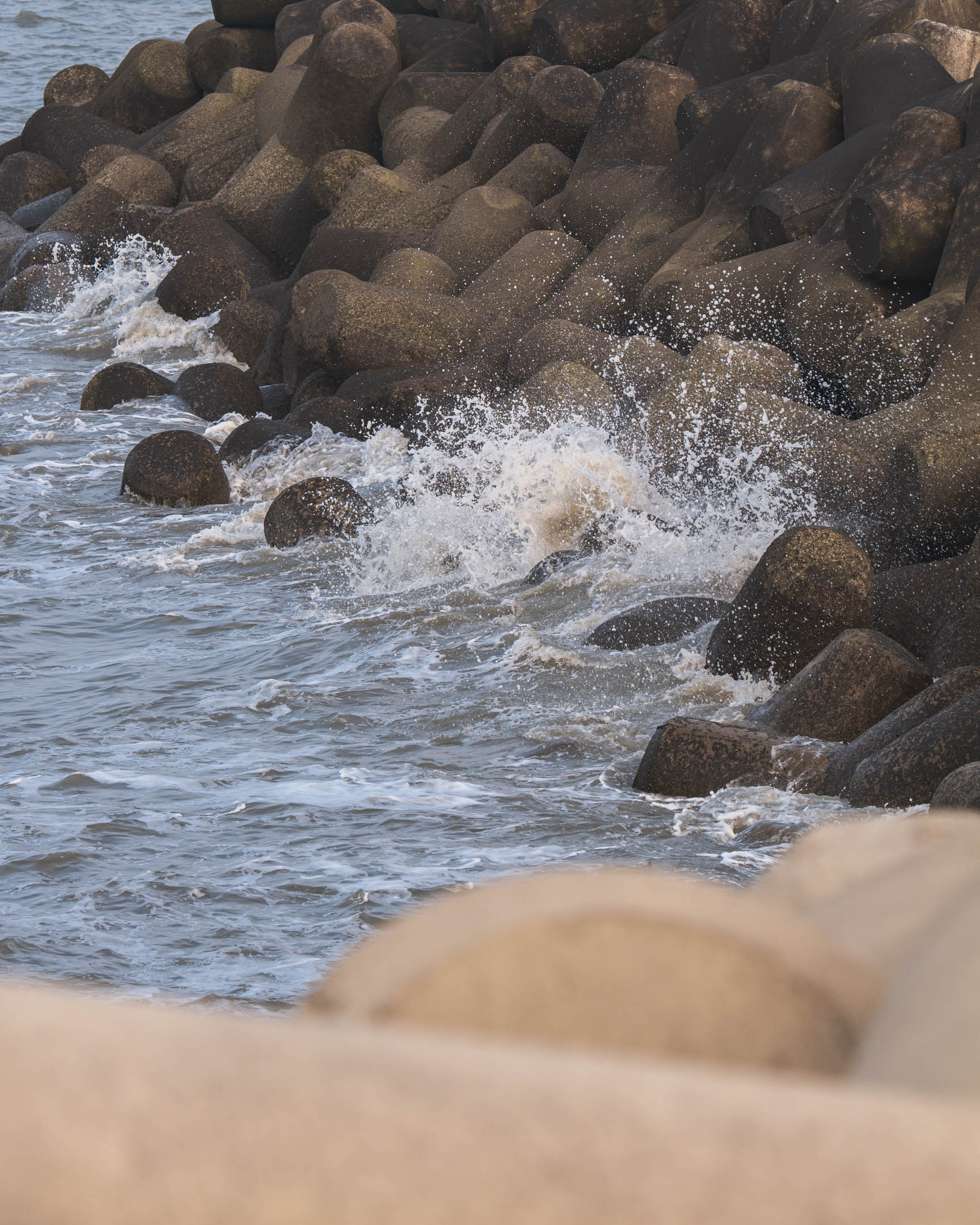방파제를 세차게 치는 파도