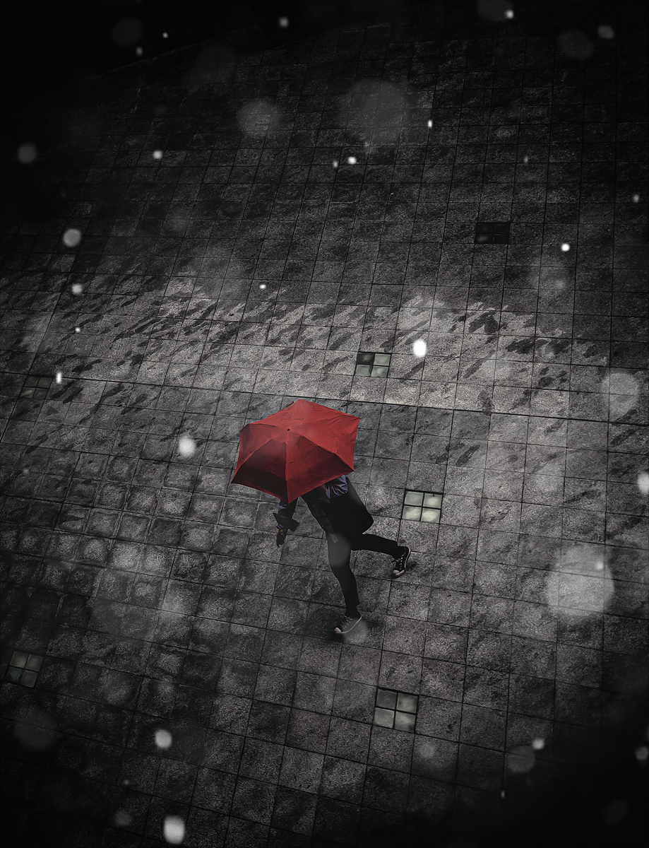 빨간 우산을 찍을 찰나의 순간을 마주하기가 쉽지 않다