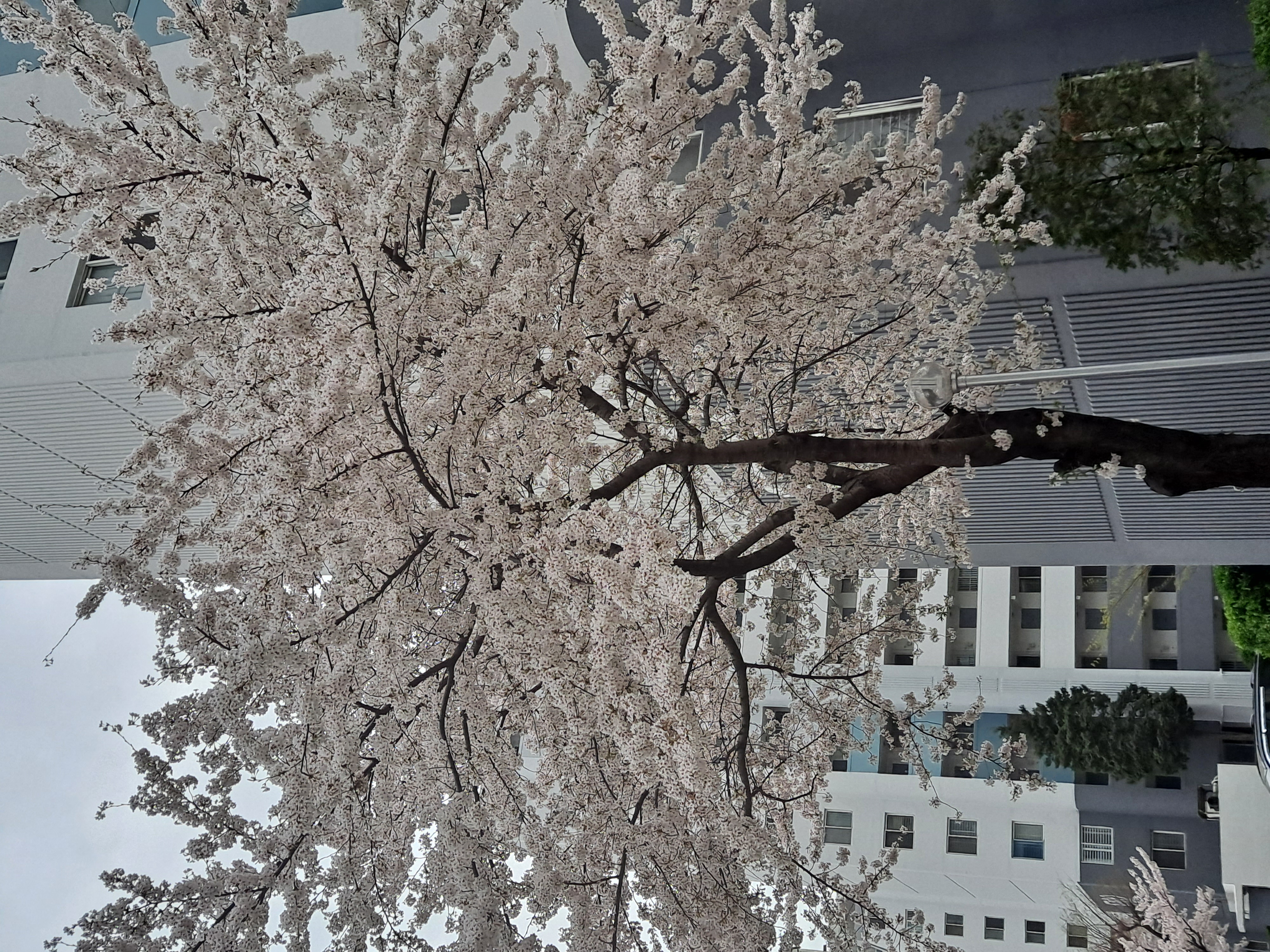 집근처에 아파트가있는데영 거기에서의벚꽃나무가 여러나무가있는데 저기하나가딱예쁘게피어서 한번찍어보았습니다