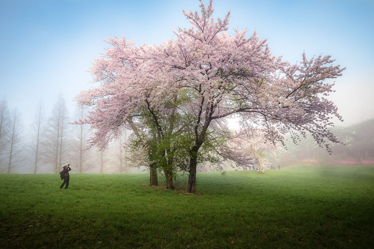 벚꽃 만발한 용비지에서 벚꽃 만개하던 날입니다.