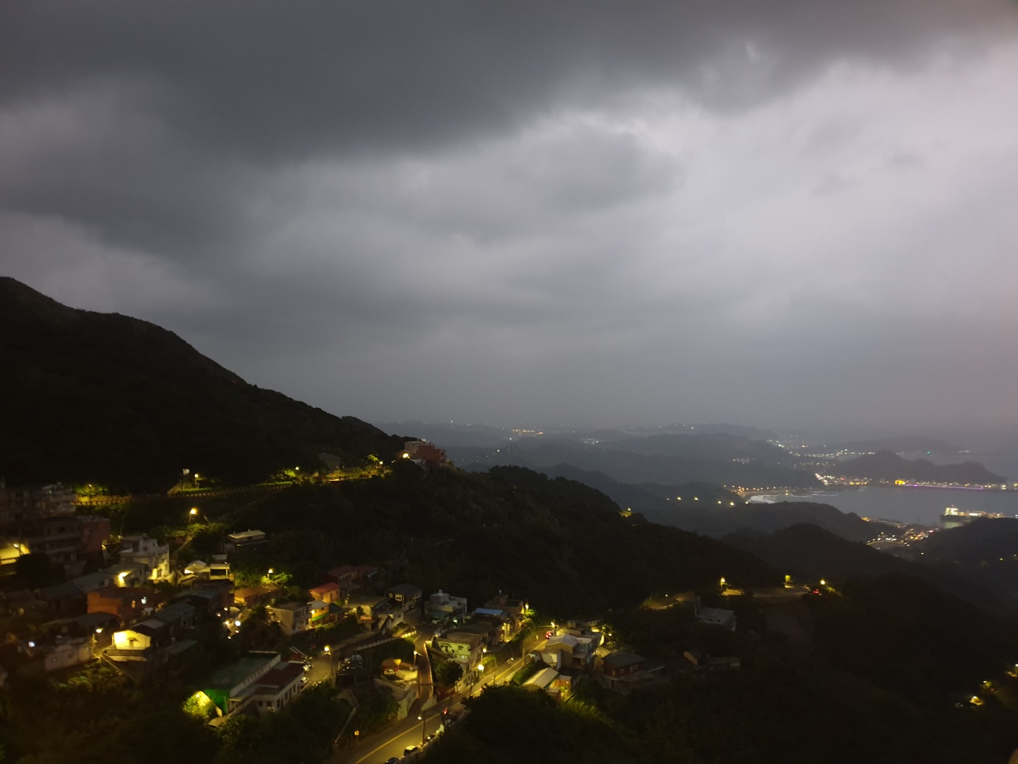 비 내린 후 테라스에서 보는 반짝이는 불빛