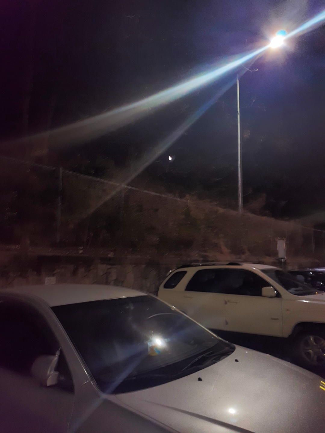 언덕에서 나무를 뚫고 나온 달을 찍은 사진