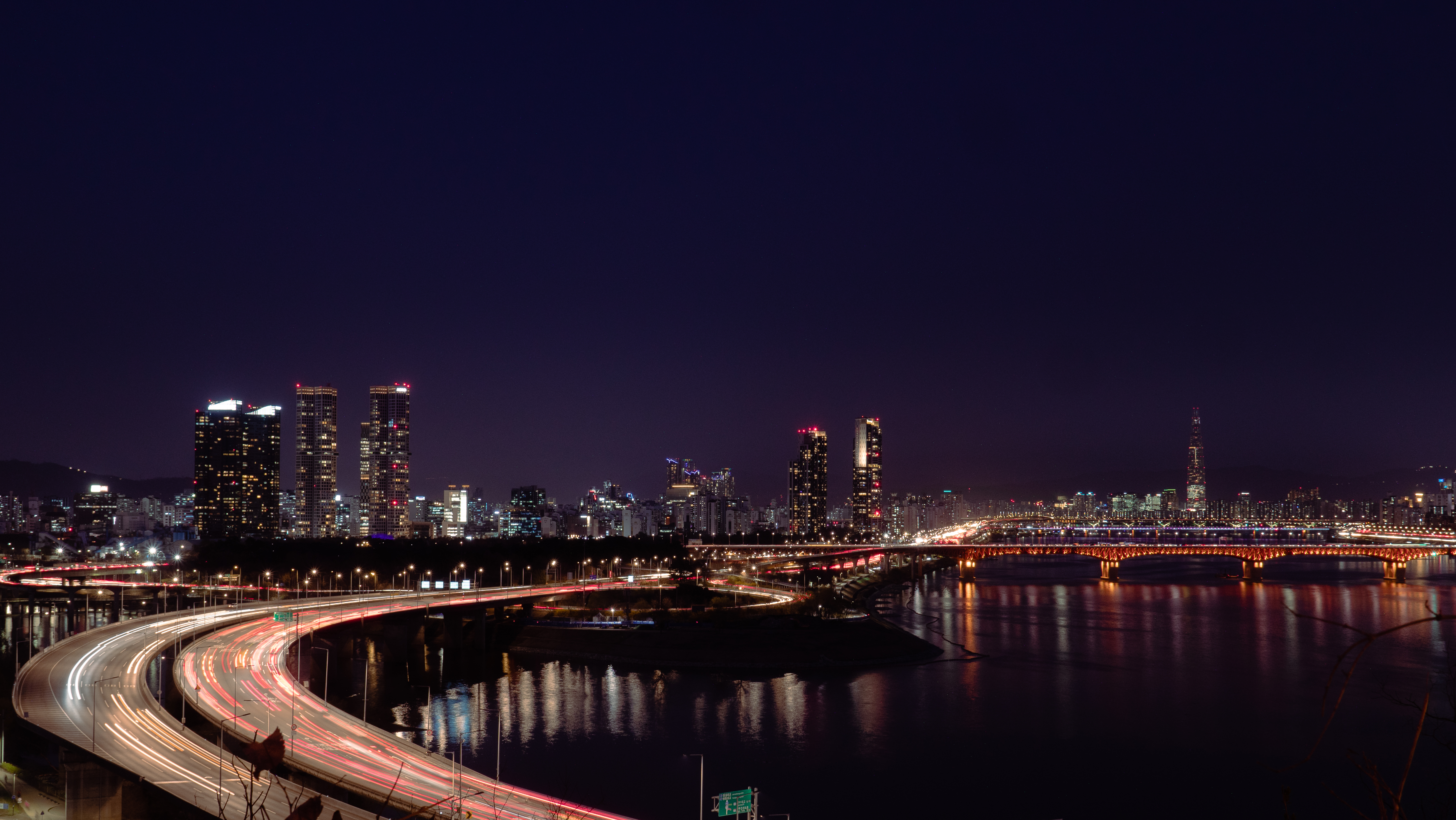 한강과 서울의 야경을 와이드한 느낌으로 담아봤습니다.