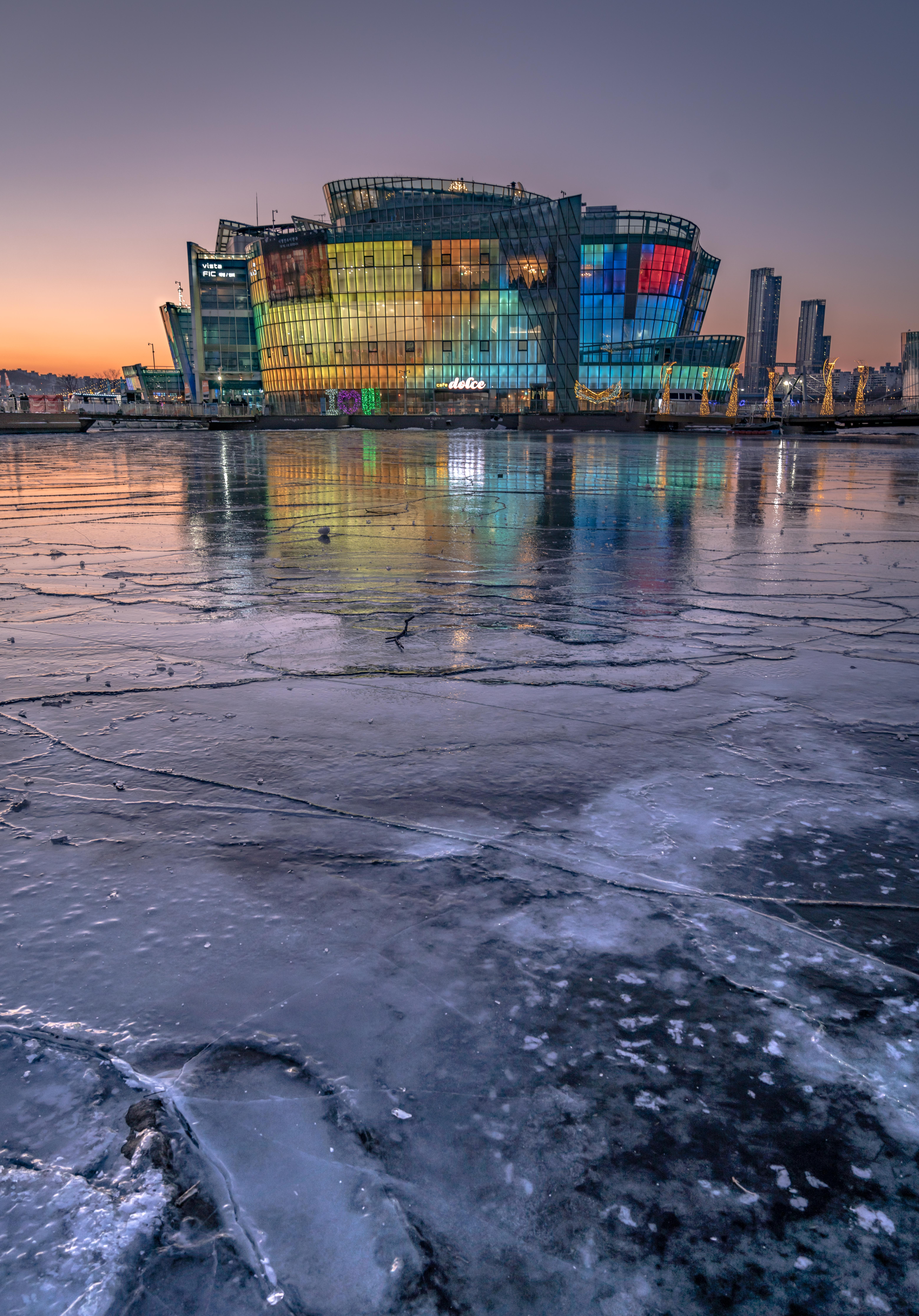-15도의 날씨에 꽁꽁 얼은 한강을 새빛섬과 함께 담아봤습니다. 붉은 노을에 비친 얼음의 색이 아름답습니다
