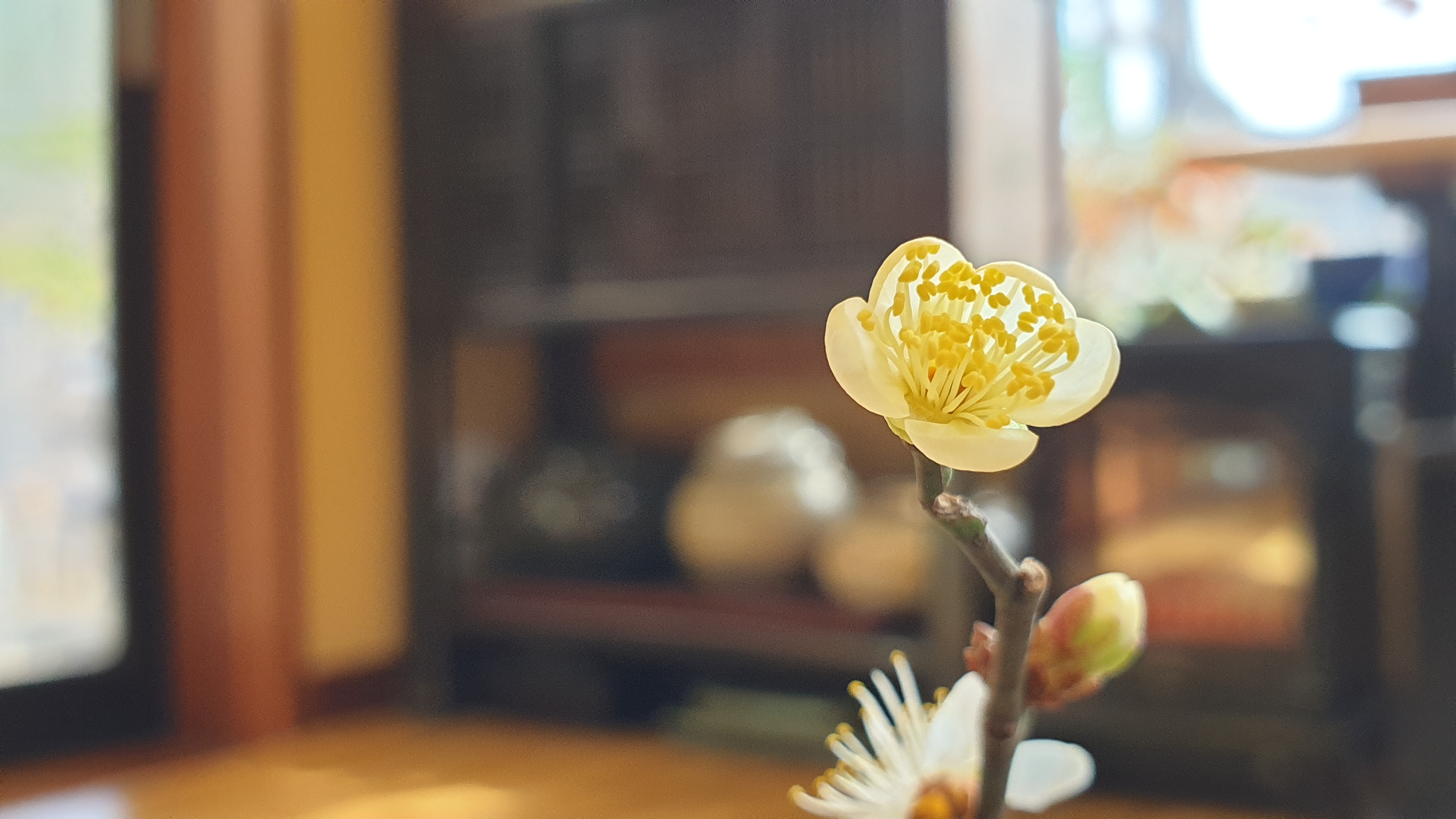 매화가 필 무렵 매화 한 촉은 거실에 봄을 풍기네요