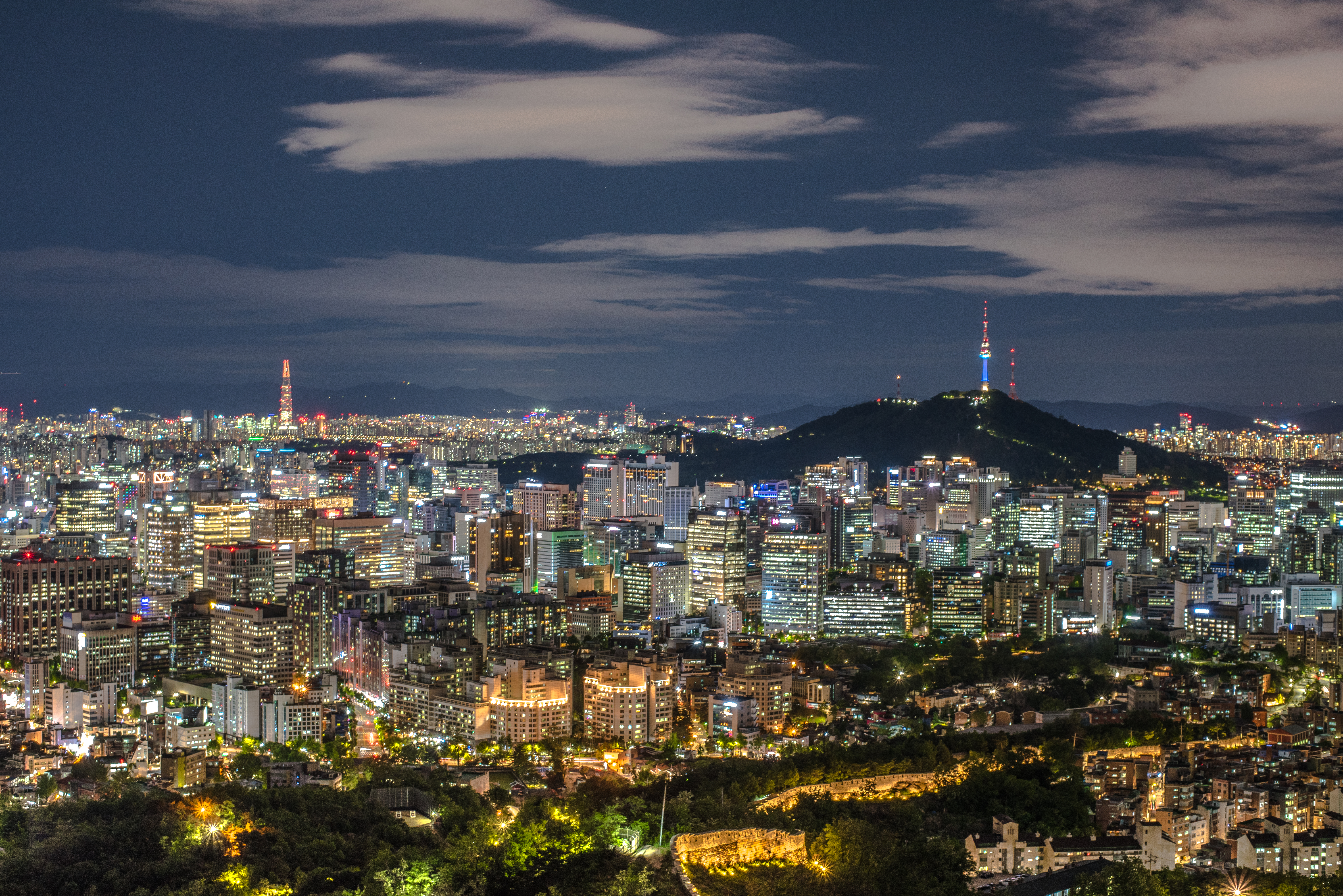 예전부터 대한민국의 랜드마크였던 남산타워와 최근에 떠오르는 롯데타워가 나란히 서있는 모습이 인상적입니다. 인왕산 도성부터 서울 도심까지 다양하게 표현했습니다