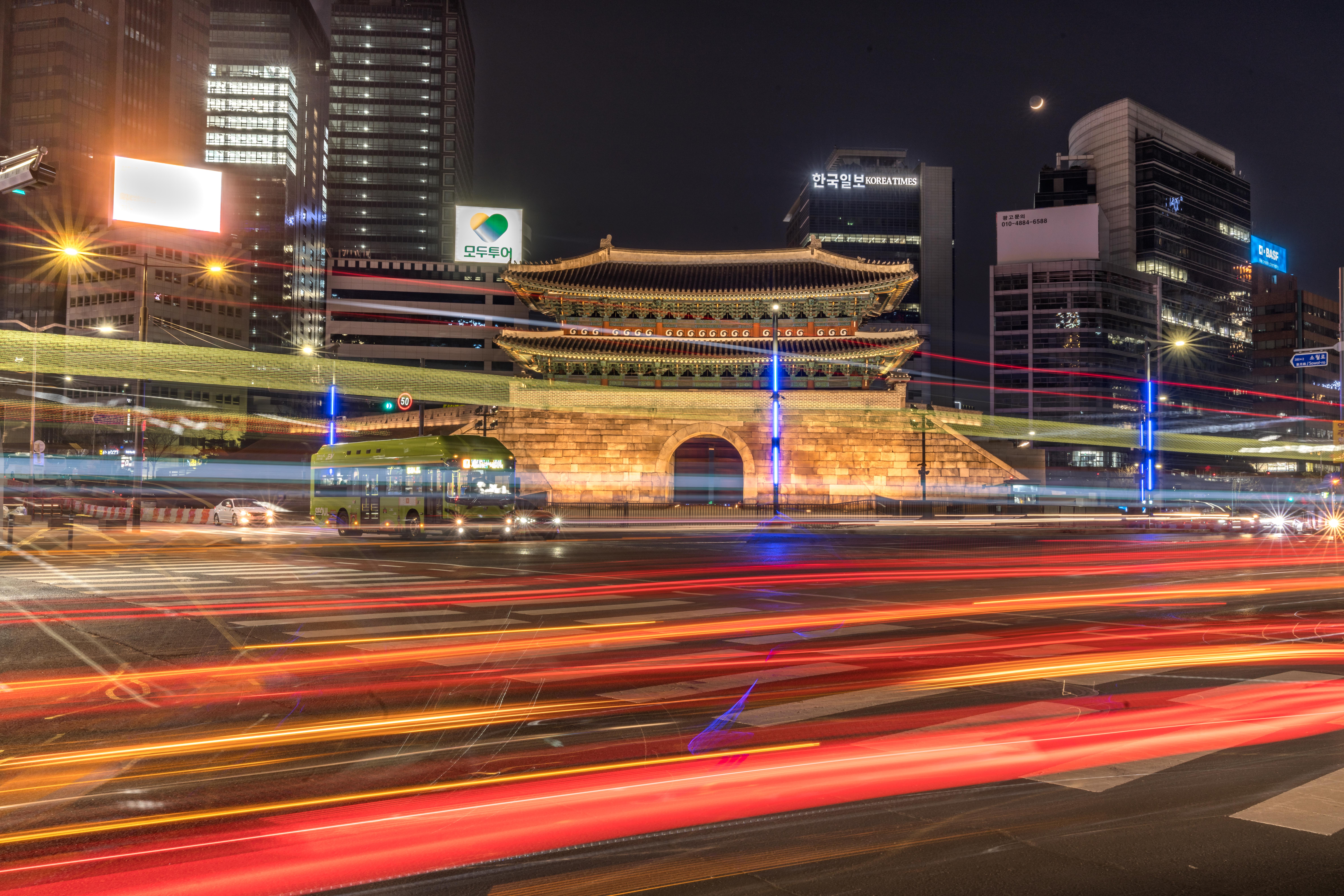 빛의 흐름을 장노출로 표현한 사진으로 하늘에 떠있는 달과 자리를 지키고있는 숭례문, 바쁜 발걸음을 재촉하는 현대사회의 모습이 정말 잘 어우러졌습니다. 다양한 색의 빛으로 표햔을 함으로써 더욱 풍성한 사진이 되었습니다.