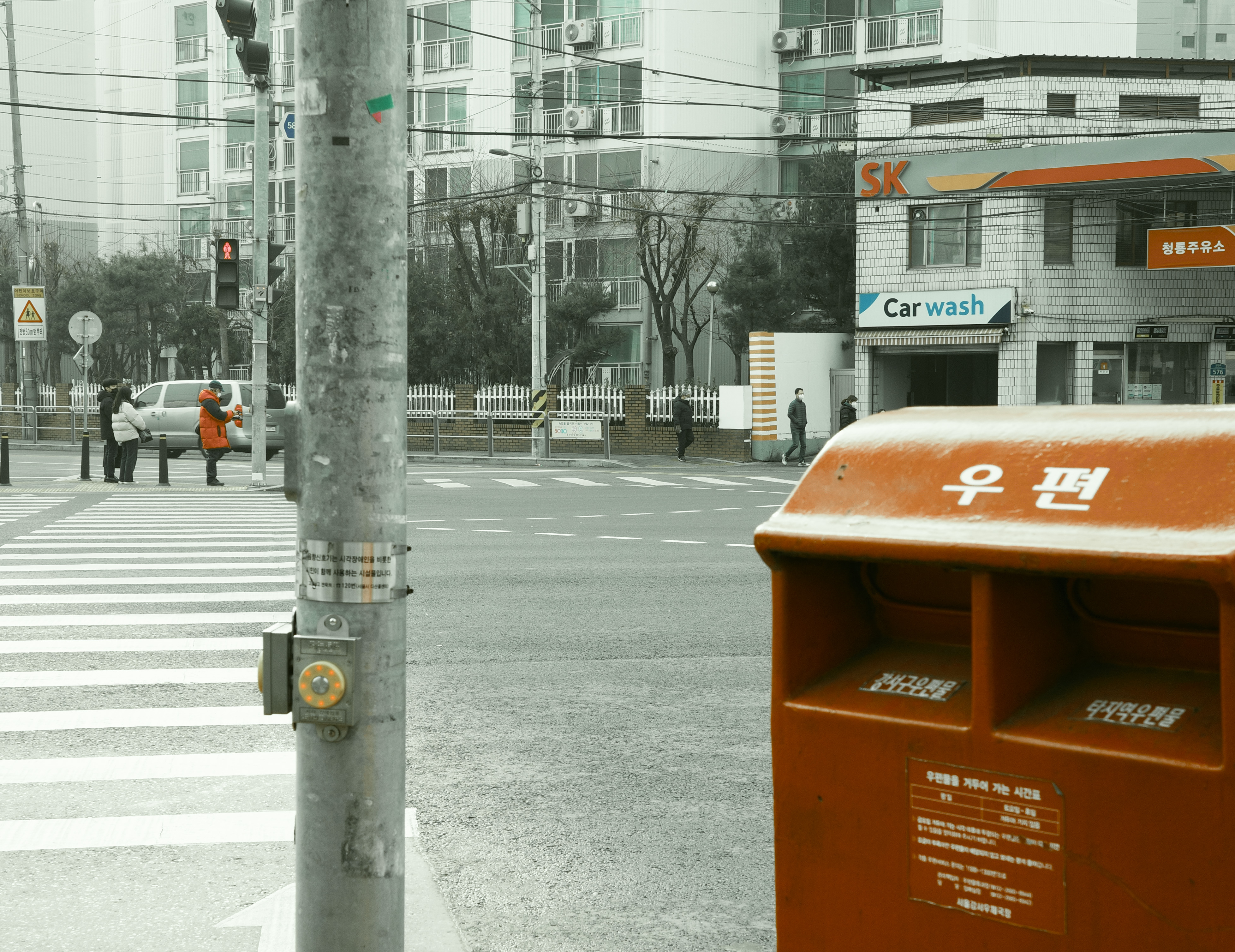 길을 가다가 우연히 행인분의 빨간색 옷과 빨간색 우체통이 조화되는 모습을 봐서 바로 촬영했습니다