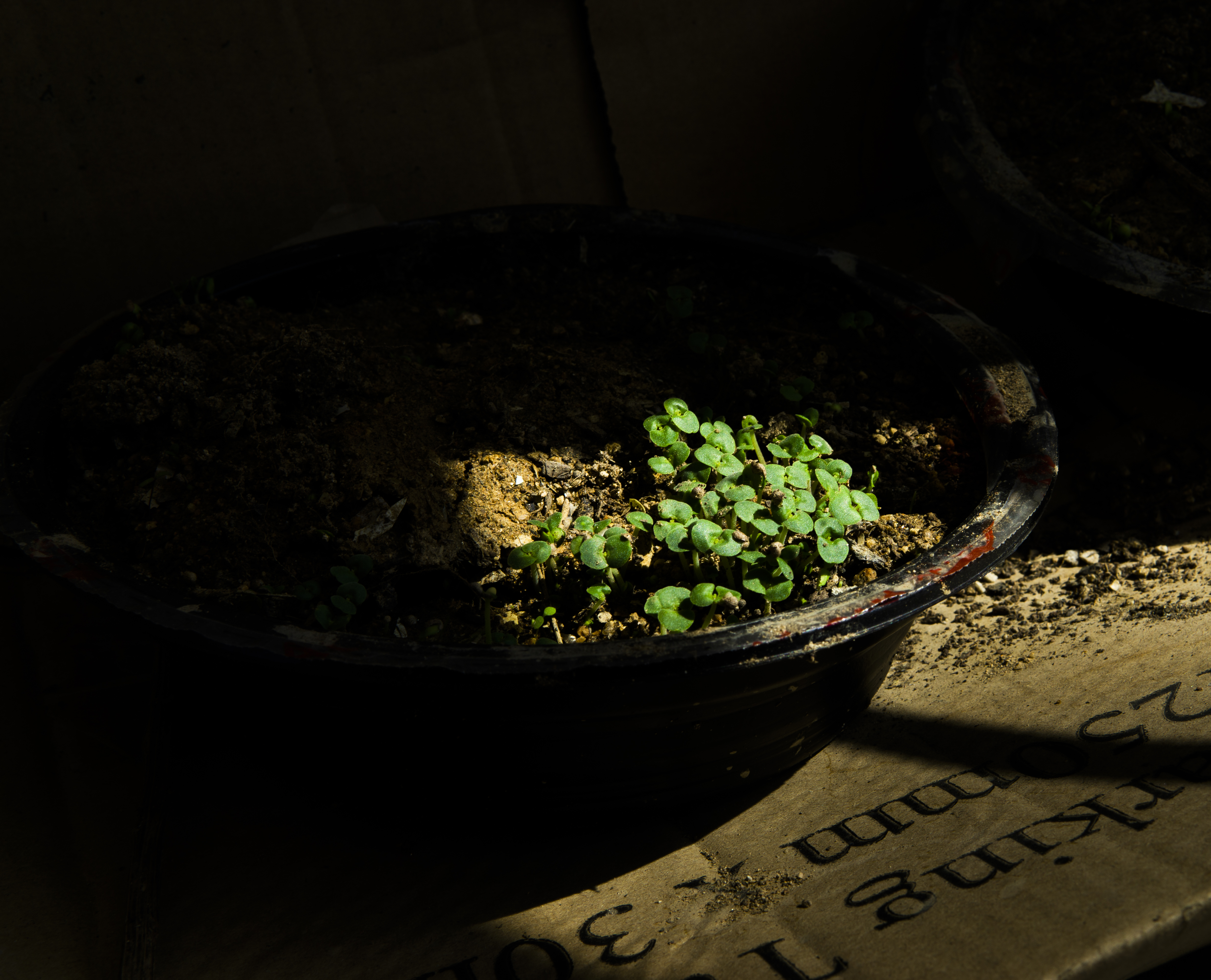 건물 안 어두운 곳에서도 힘차게 자라나는 새싹들입니다.