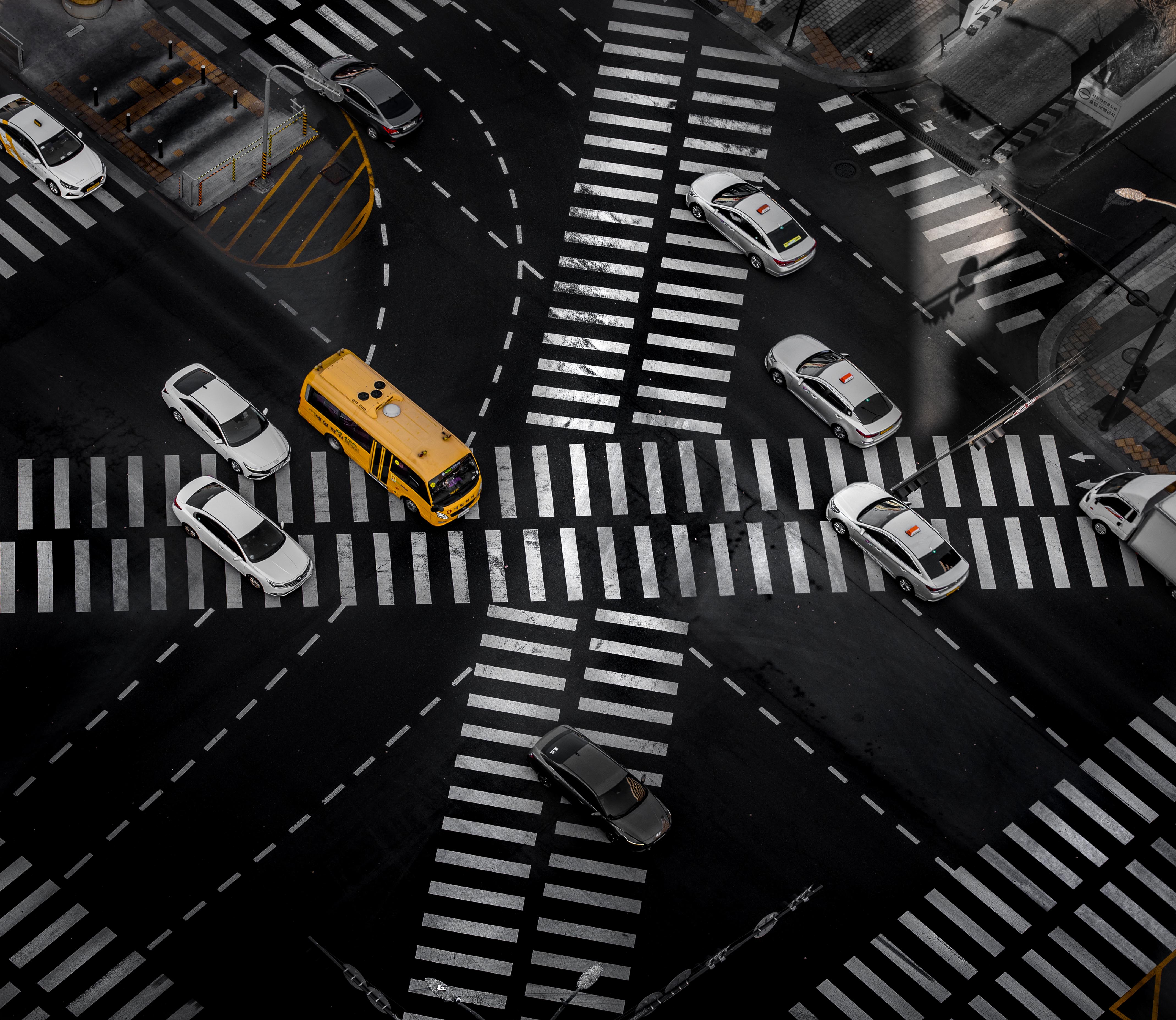 하얀색 차들과 검은 도로 위 노란색 버스가 지나갑니다. 노란색 버스는 다른차들과 틀린게 아니라 다르다는것을 표현했습니다. 우리의 삶에서도 틀림을 찾는것이 아닌 다름을 찾고 인정함으로서 더욱 행복한 사회가 되었으면 좋겠다는 바램에서 촬영했습니다.