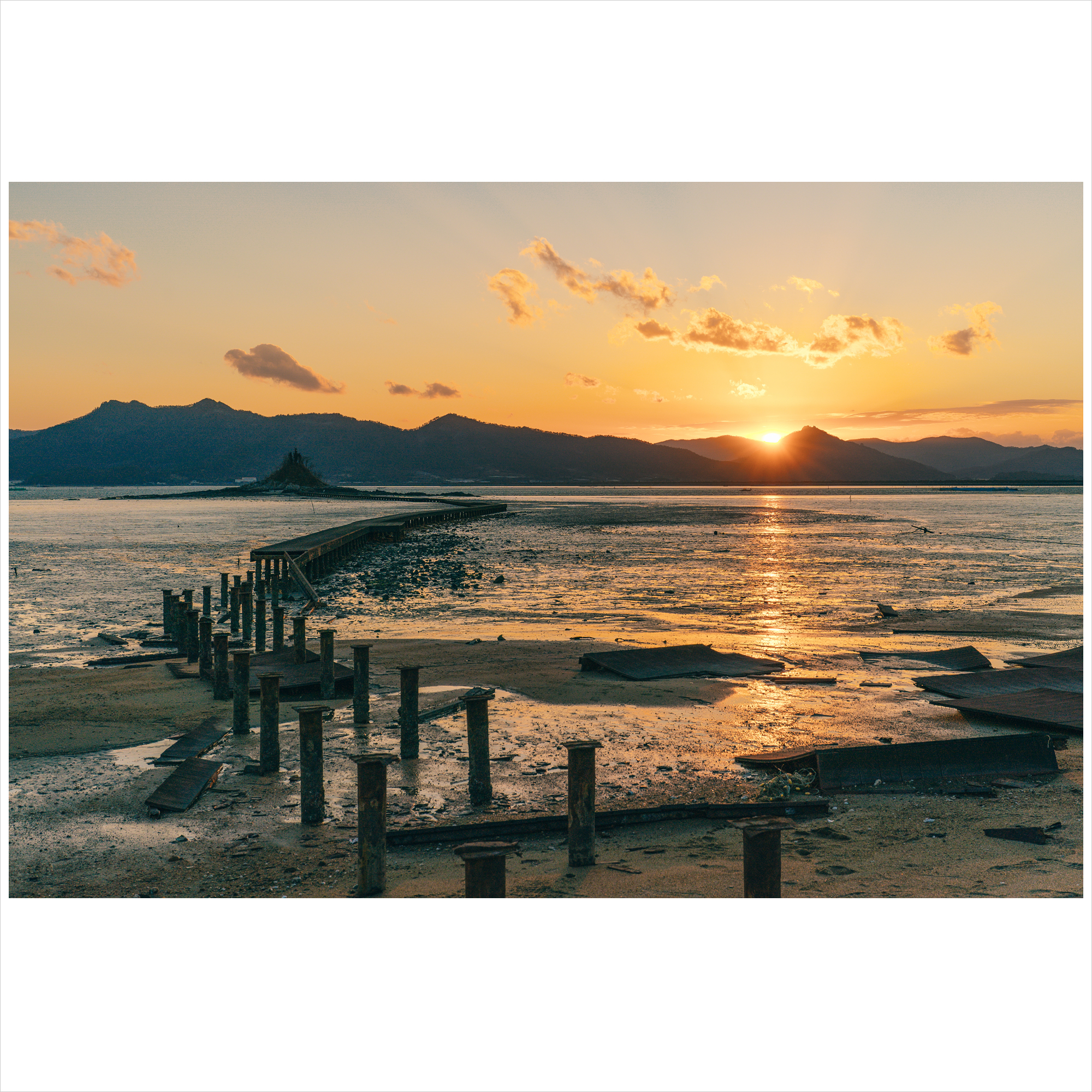 태풍으로 부서진 다리와 아름다운 빛의 붉은 노을의 상반되는 느낌을 촬영하였습니다.