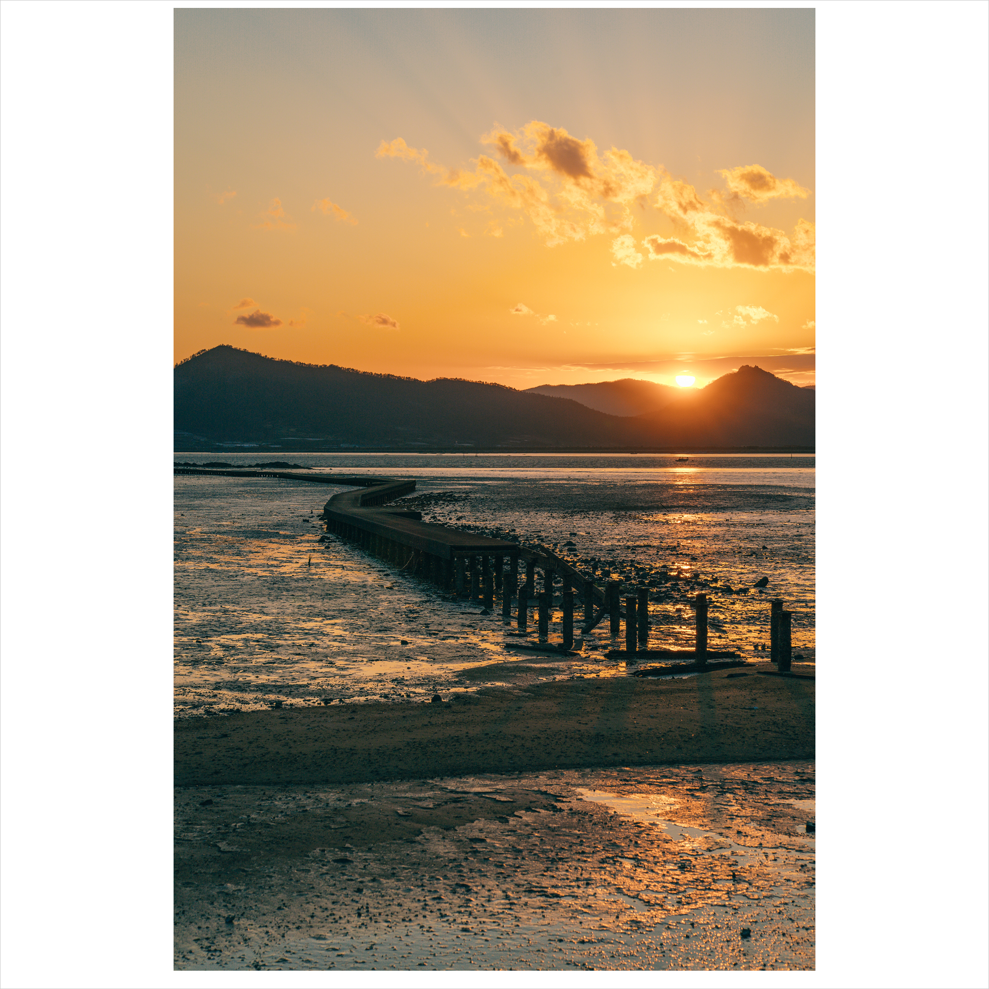 부서진 다리와 아름다운 붉은노을의 상반되는 느낌을 촬영하였습니다.
