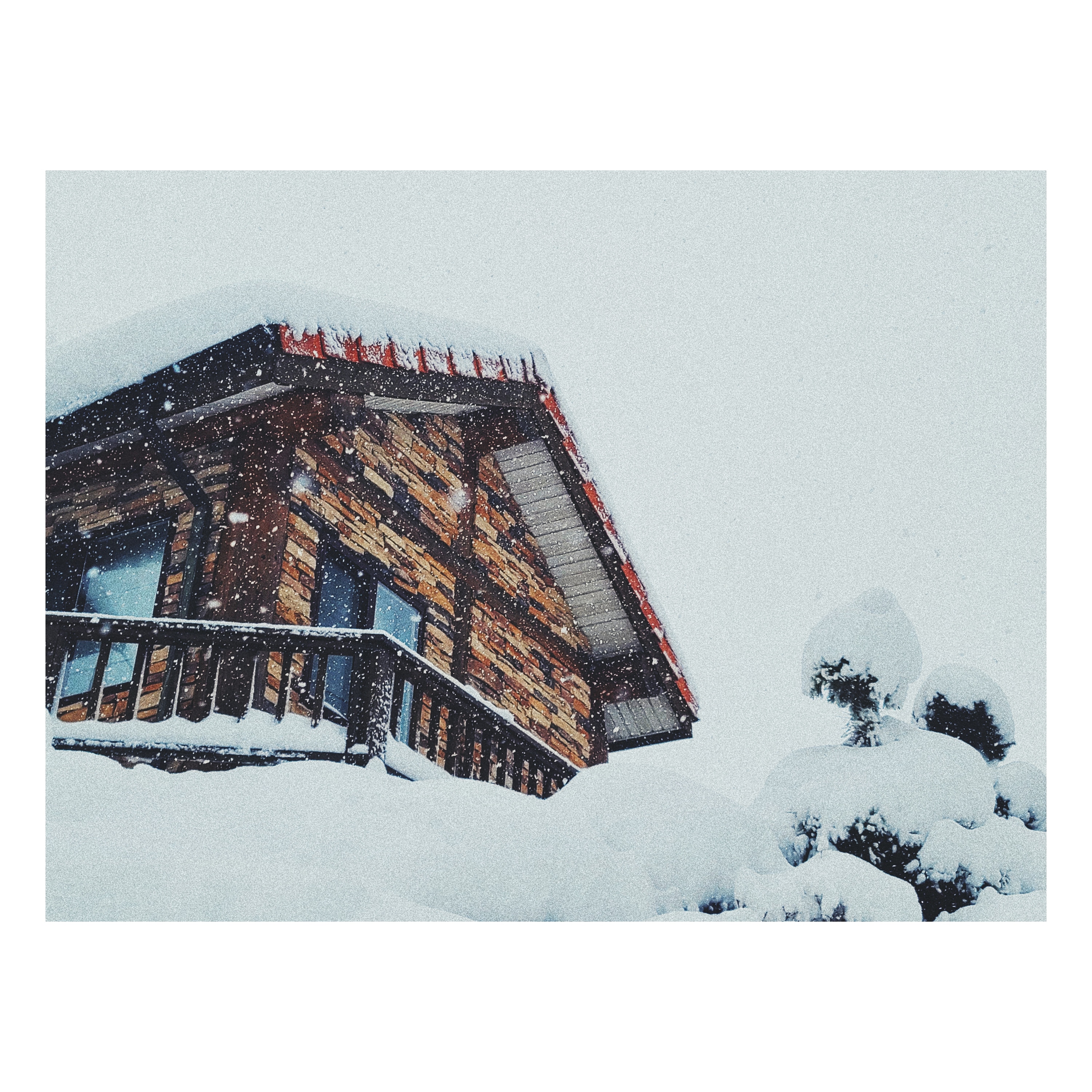 흩날리는 눈 뒤로 따뜻한 색감의 한 집이 보기좋아 한컷.