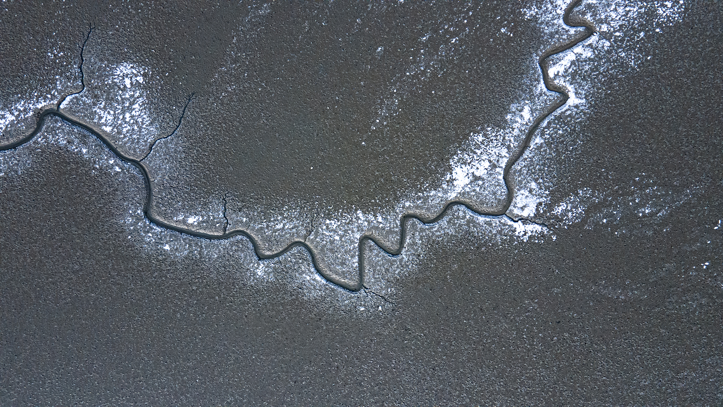 갑자기 추워진 날씨에 어느 순간 서해바다의 갯골도 꽁꽁 얼어붙었답니다.하늘 위에서 내려다본 갯골의 자유로운 곡선의 모습을 한 장의 사진으로 표현해 보았습니다.
