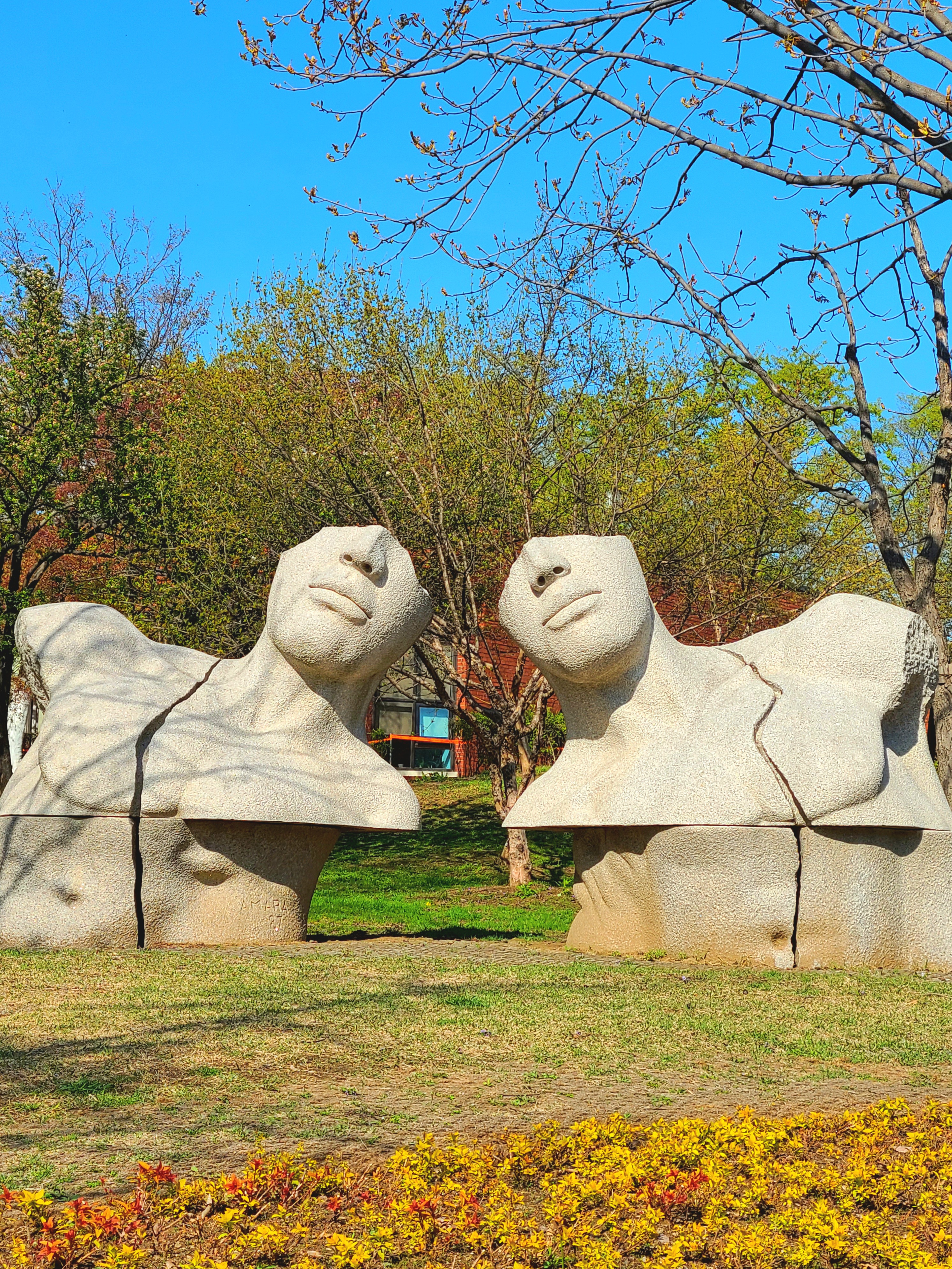 올림픽공원의 대표적인 조각상으로 알제리의 예술가가만들었다고 합니다대화라는 작품명은 단순히 말하는걸 의미 하는게 아니라 소통과 교감을 의미하는거라고 하네요