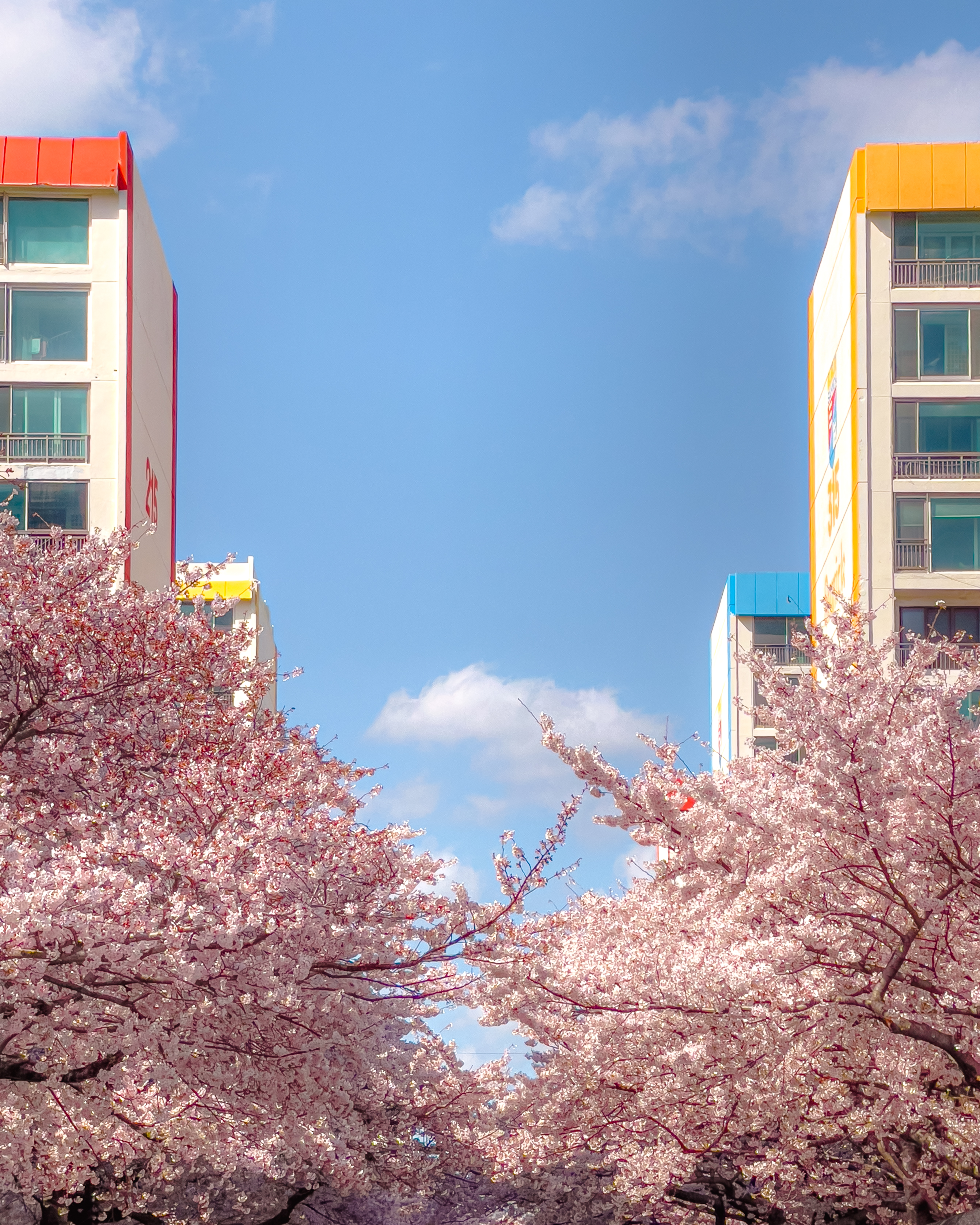 부산 삼익비치 아파트에 만개한 벚꽃들