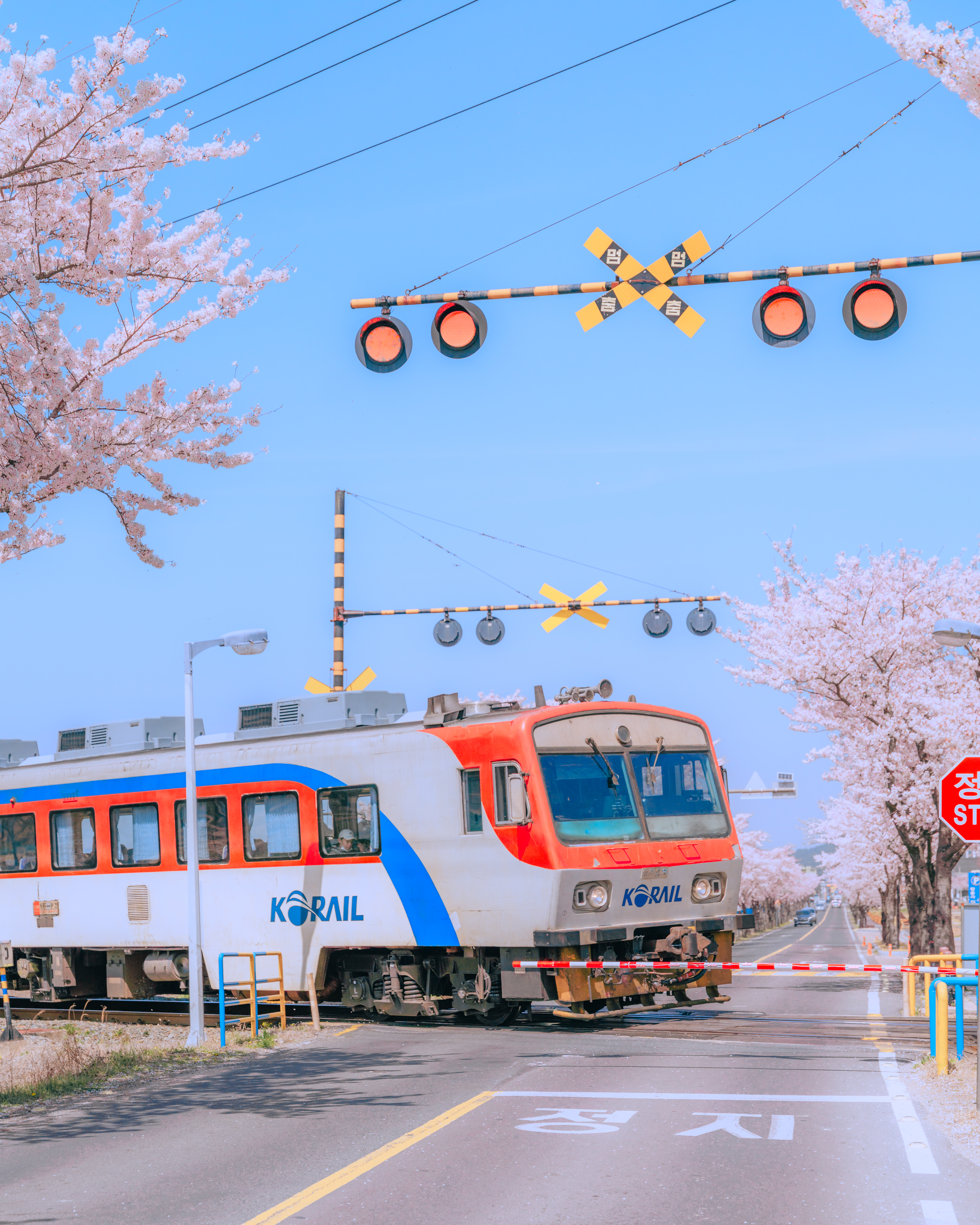 경주 동궁과 월지 앞 기찻길에 마지막 벚꽃잎이 활짝 고개를 들었습니다. 벚꽃이 만개했던 경주의 어느 날, 느린 듯 빠른 기차가 철컥철컥 소리를 내며 달리는 풍경이 정말 아름다워 사진으로 담아보았습니다.