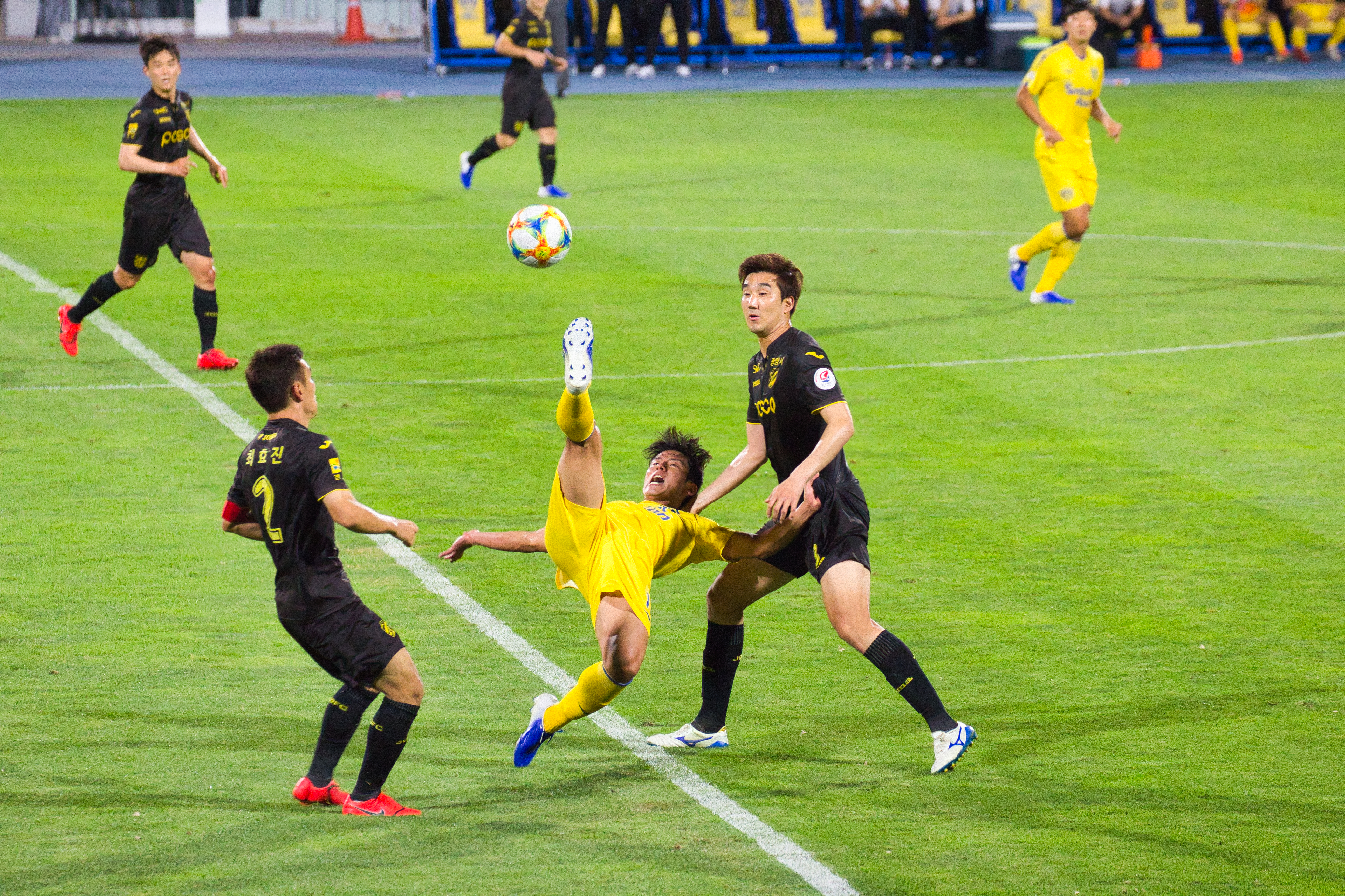 아산무궁화 축구단의 선수의 날아라 발차기 장면~~