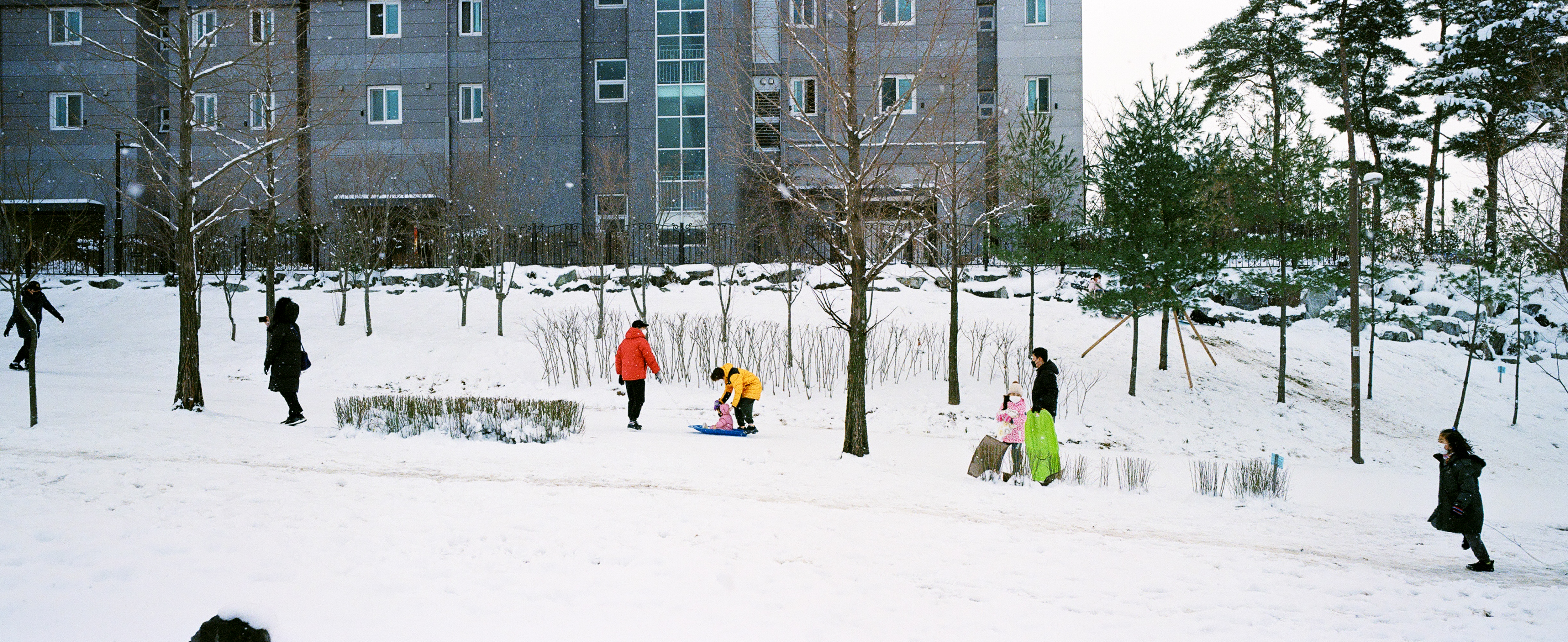 지난 겨울에 유독 눈이 많이 왔습니다. 이 많은 내린 눈들 덕분에 코로나때문에 밖에 나가 놀지 못한 아이들에게 간이 썰매장이 생겼습니다. 길이는 짧지만 아이들이 정말 신나게 썰매를 탔던 모습이 기억에 남습니다. 사진은 파노라마 카메라인 XPAN과 필름은 코닥 ULTRAMAX400을 이용하였습니다.