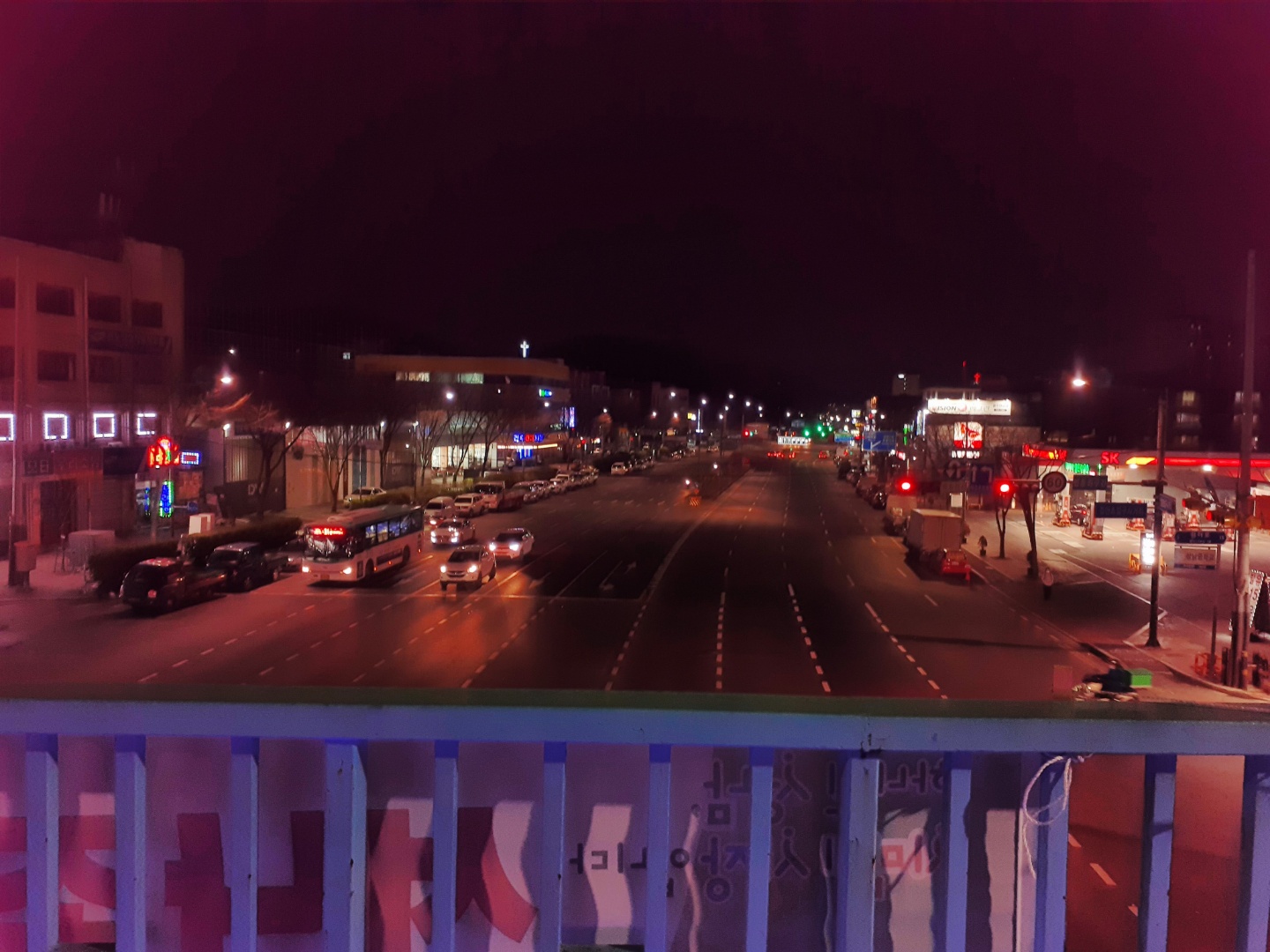 해가 저문 밤, 육교 위에서 사진을 찍음