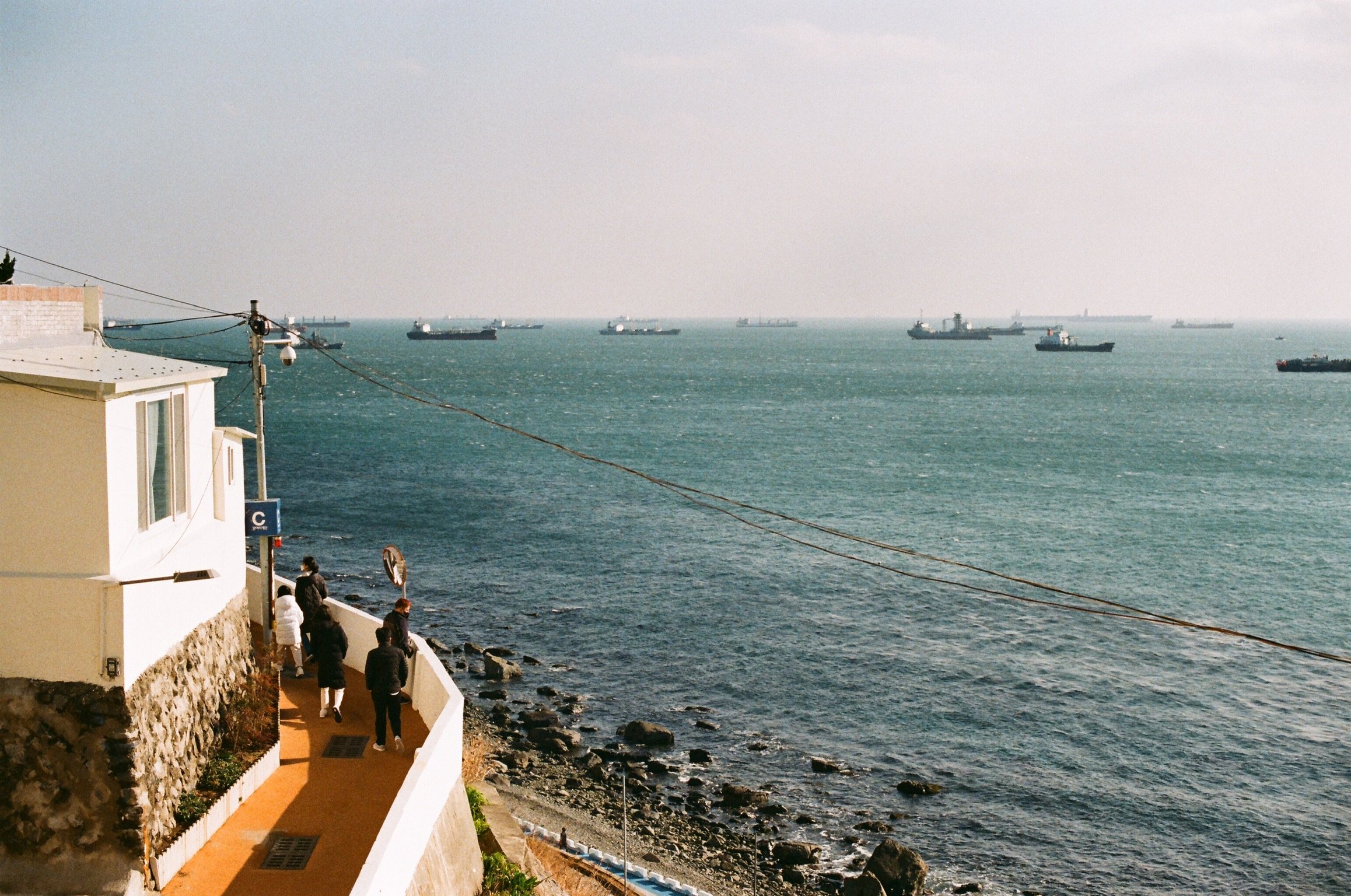 초록색으로 빛나는 바다와 노란 산책로가 주는 따스한 느낌을 기록했습니다. 추운 날씨였지만(ㅠ) 이 사진을 보는 분들에게 따스함이 전해졌으면 합니다:) (캐논 T70, FD 50mm F1.4 s.s.c., 코닥 컬러플러스 200)