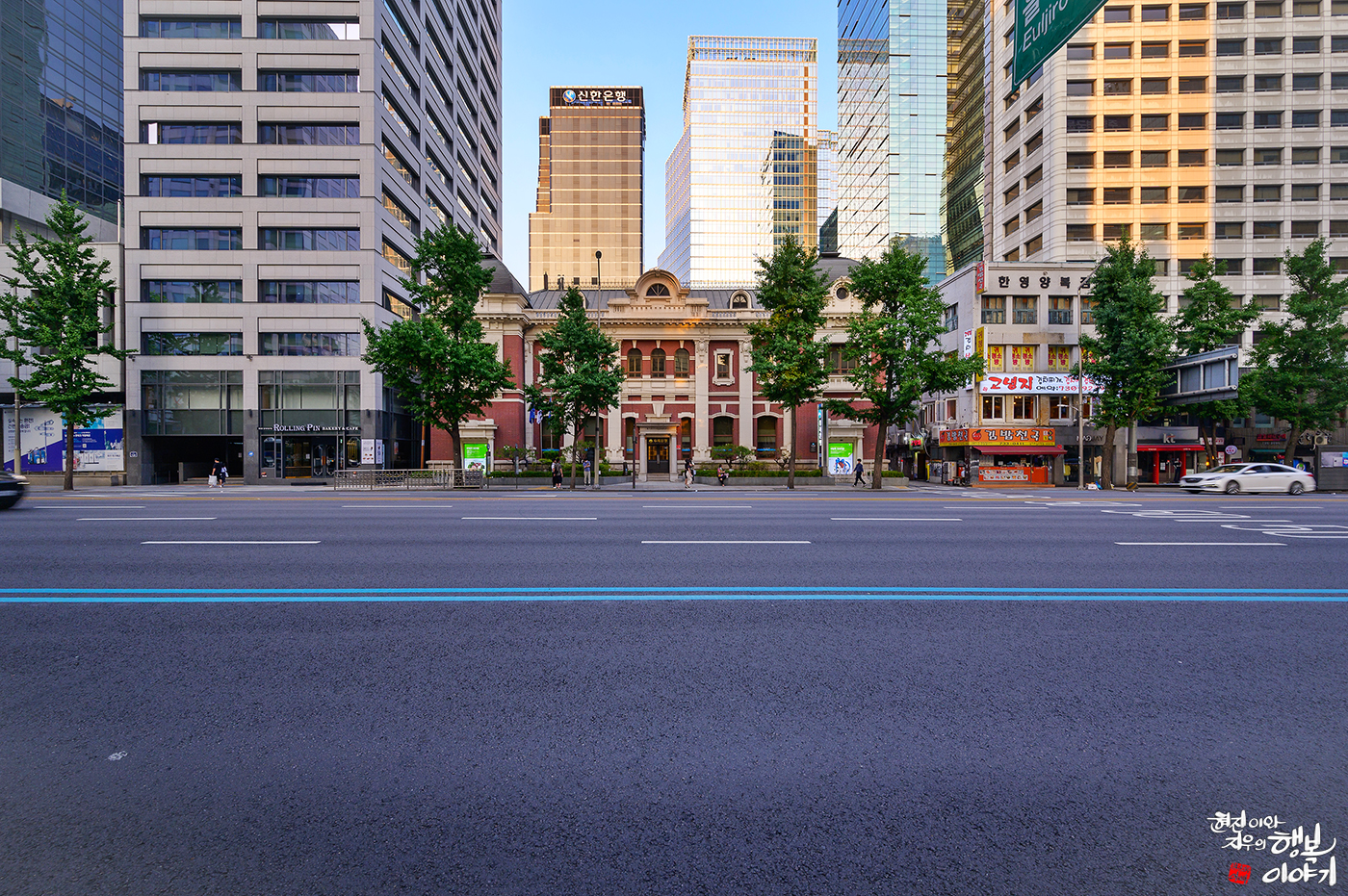 근대에서 현대까지 각자 다른 시대의 건물이 조화를 이루고 있는 사진입니다.