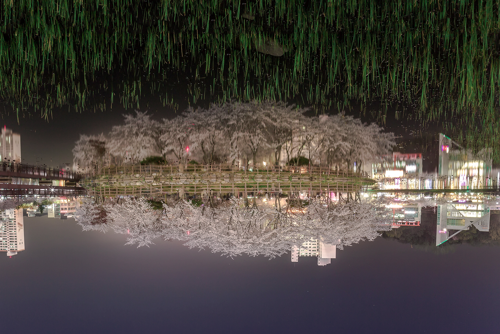 언제나 봄을 알려주는 벚꽃이 내려앉은 저녁의 평온한 저수지 풍경을 담아봤습니다.