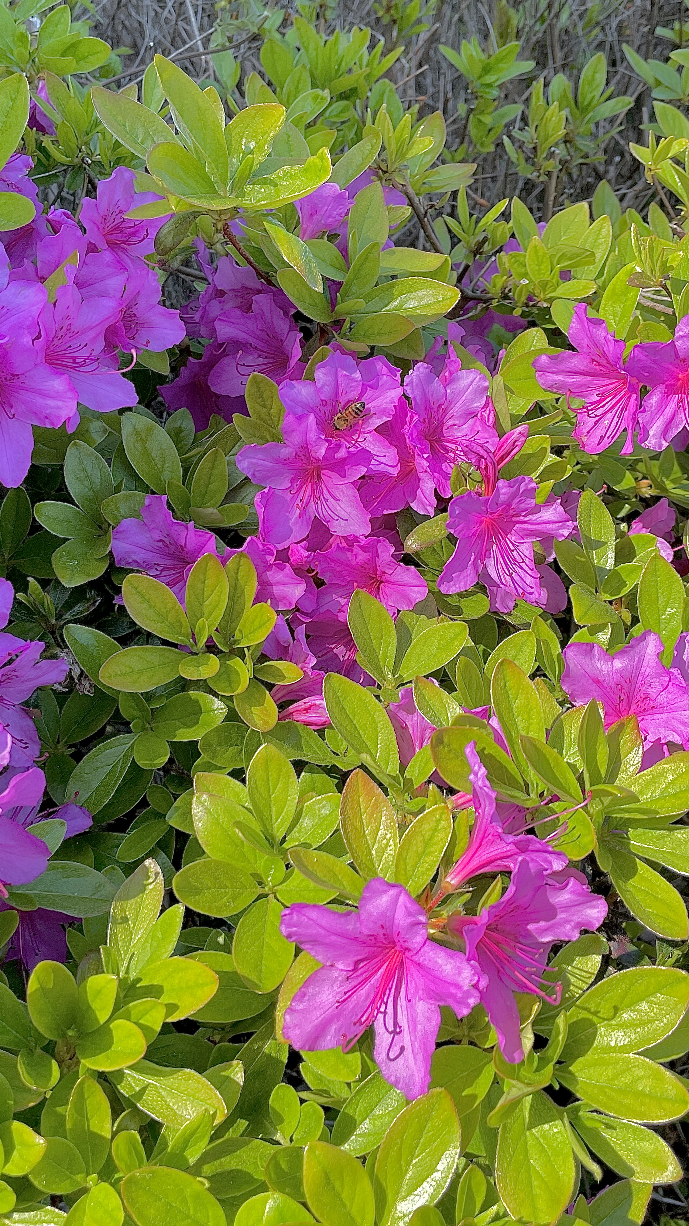 학교 캠퍼스 안에 화단 속 꽃과 벌