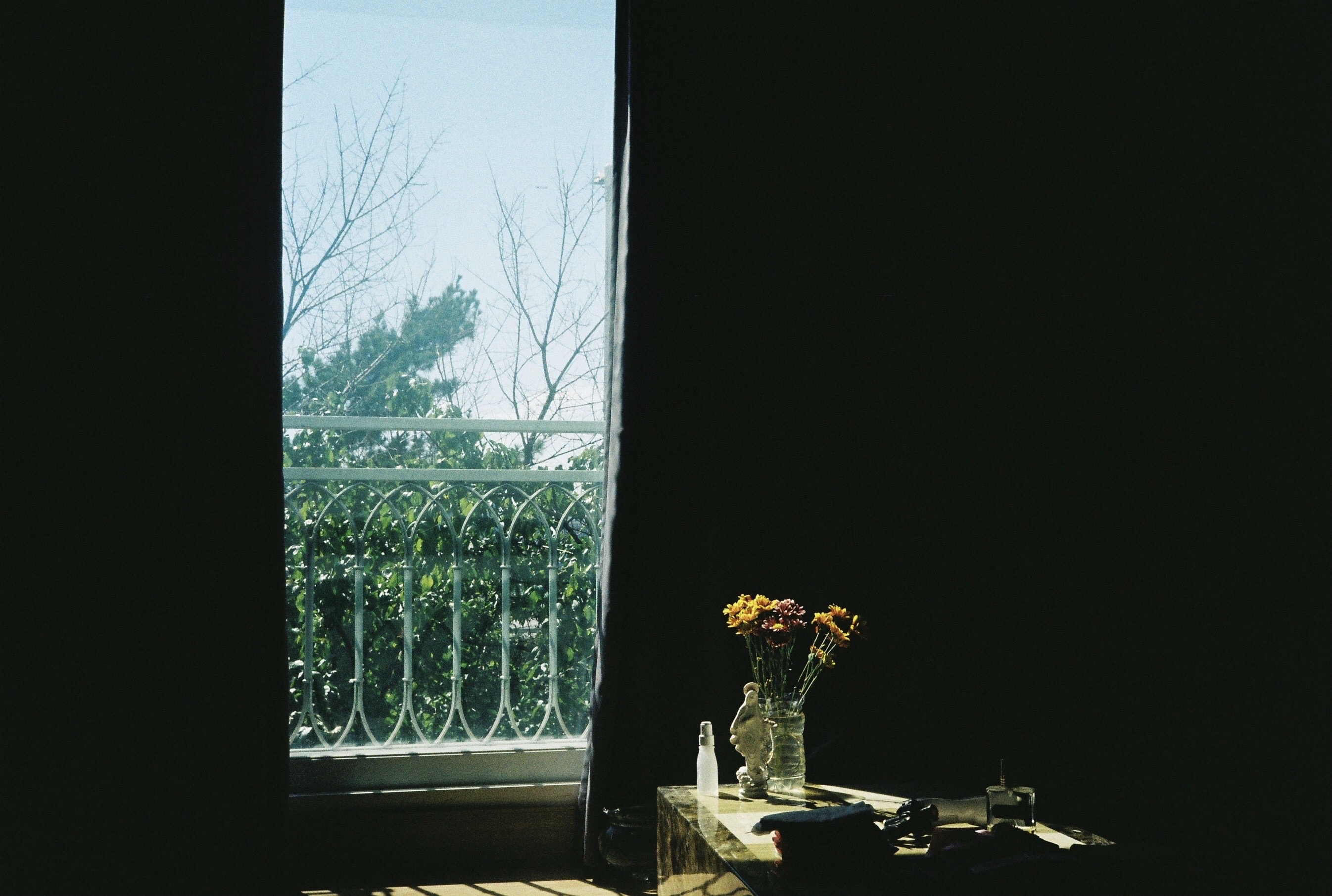 평범한 거실의 풍경이지만 어둠이 주는 분위기로 인해 달라 보이는 일상의 신비로운 모습