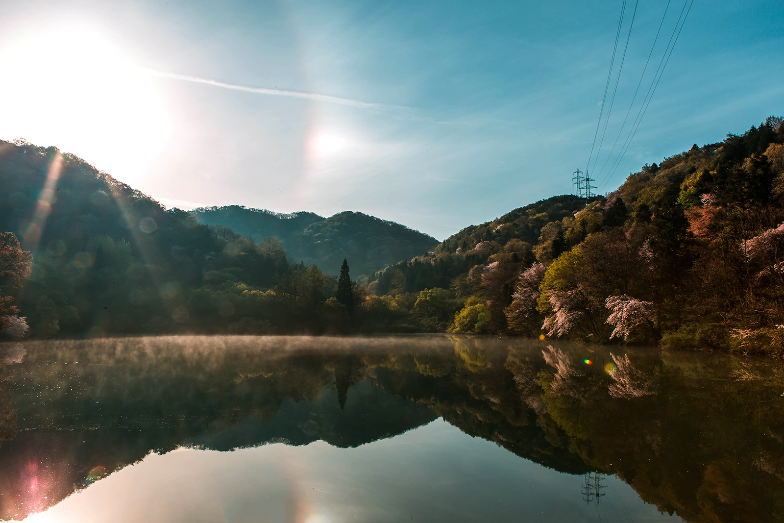 화창한 봄날 아름다운 세량지의 봄을 담으러갔는데 조금은 쌀쌀한 봄날의 아침이라서 그런지 환일현상을 만나게 되었습니다.