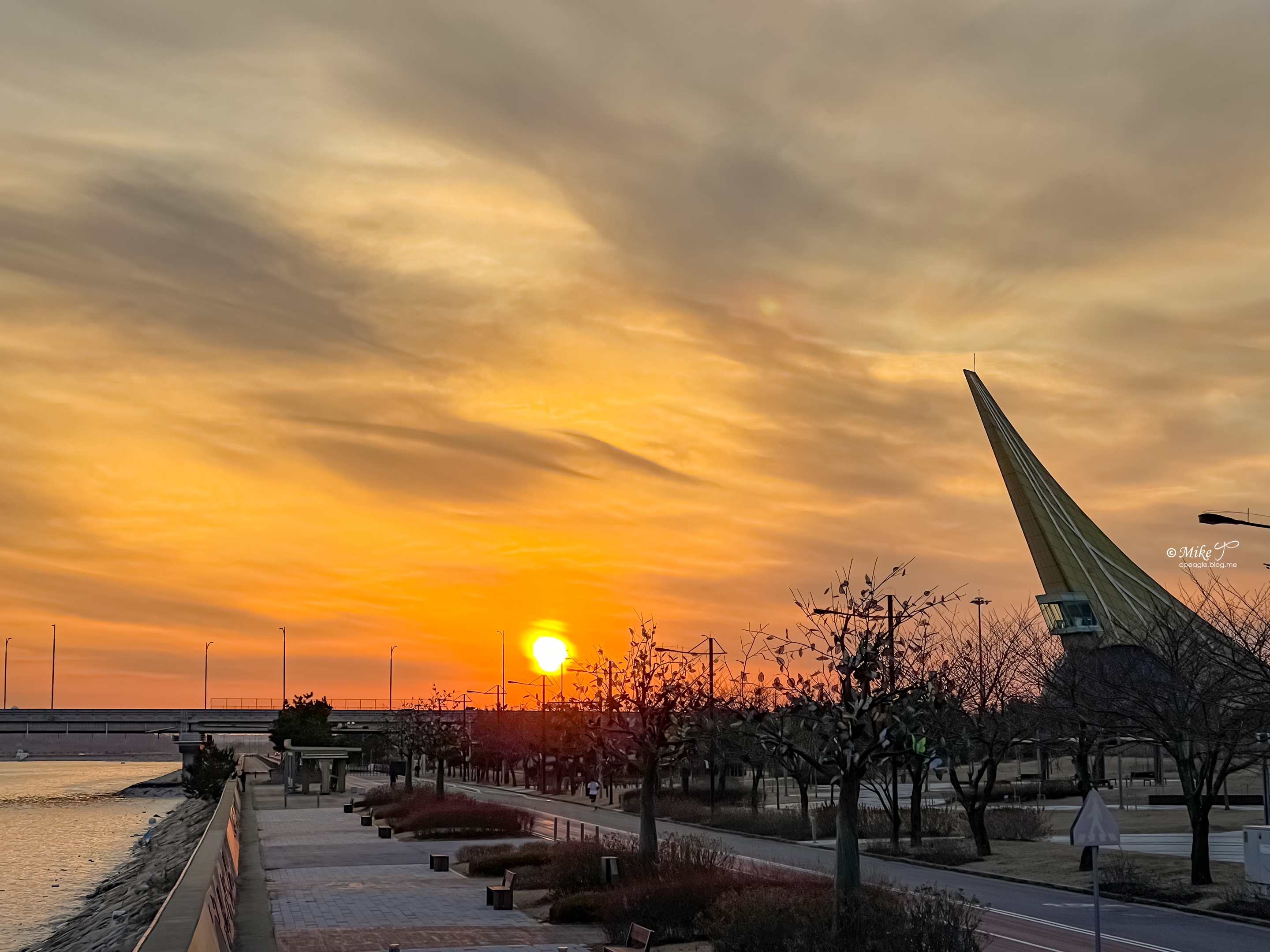 인천대교기념관이 보이는 수변공원의 일몰입니다.
