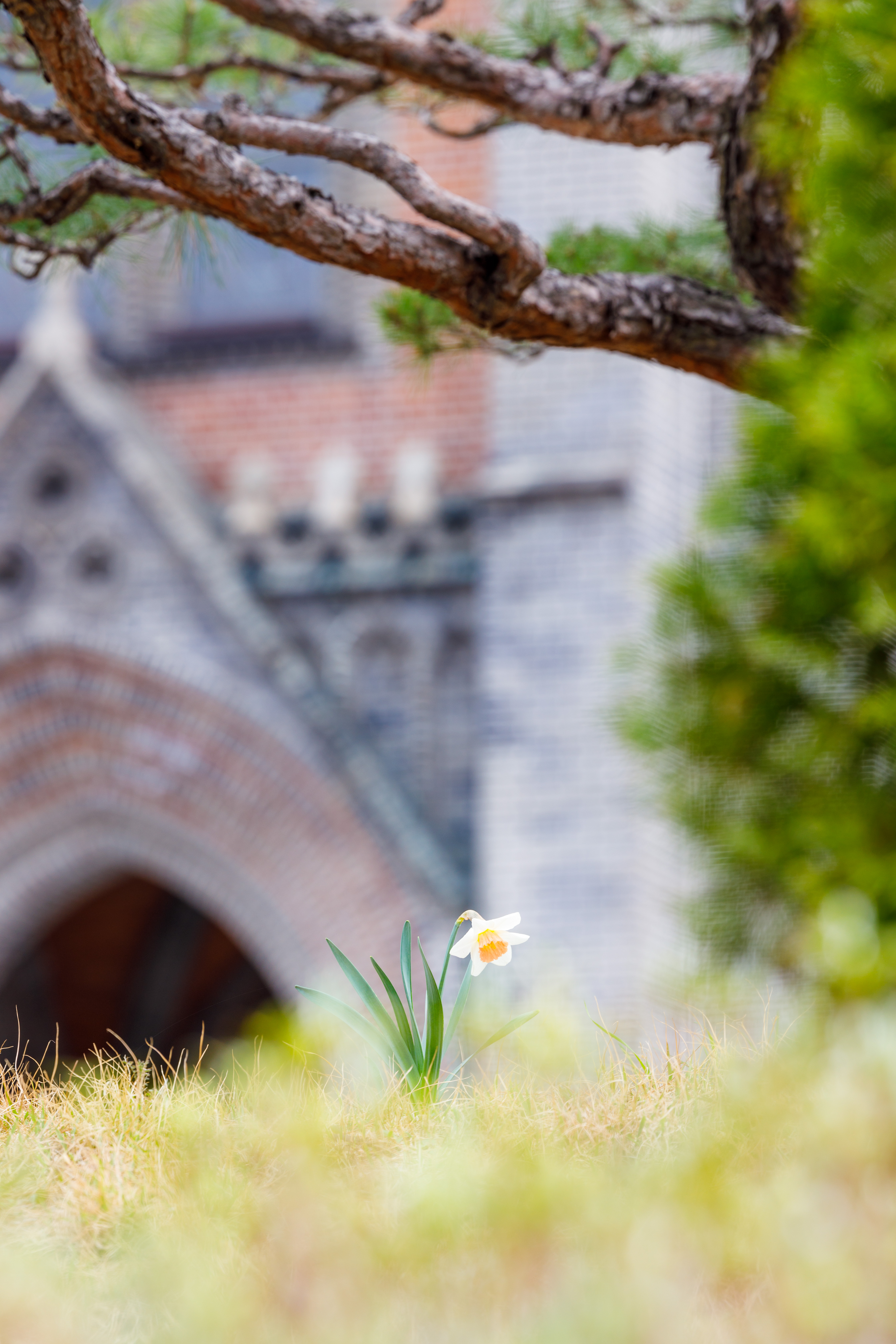 부활대축일에 방역봉사로 이리저리 뛰어다니다 우연히 들머리에 피어 있는 한송이의 수선화를 발견잠깐 미사가 없느 쉬는 시간에 짬을 내서 촬영하였습니다.하얀 수선화의 꽃말은 신비...부활의 신비를 느끼는 날 이었습니다.