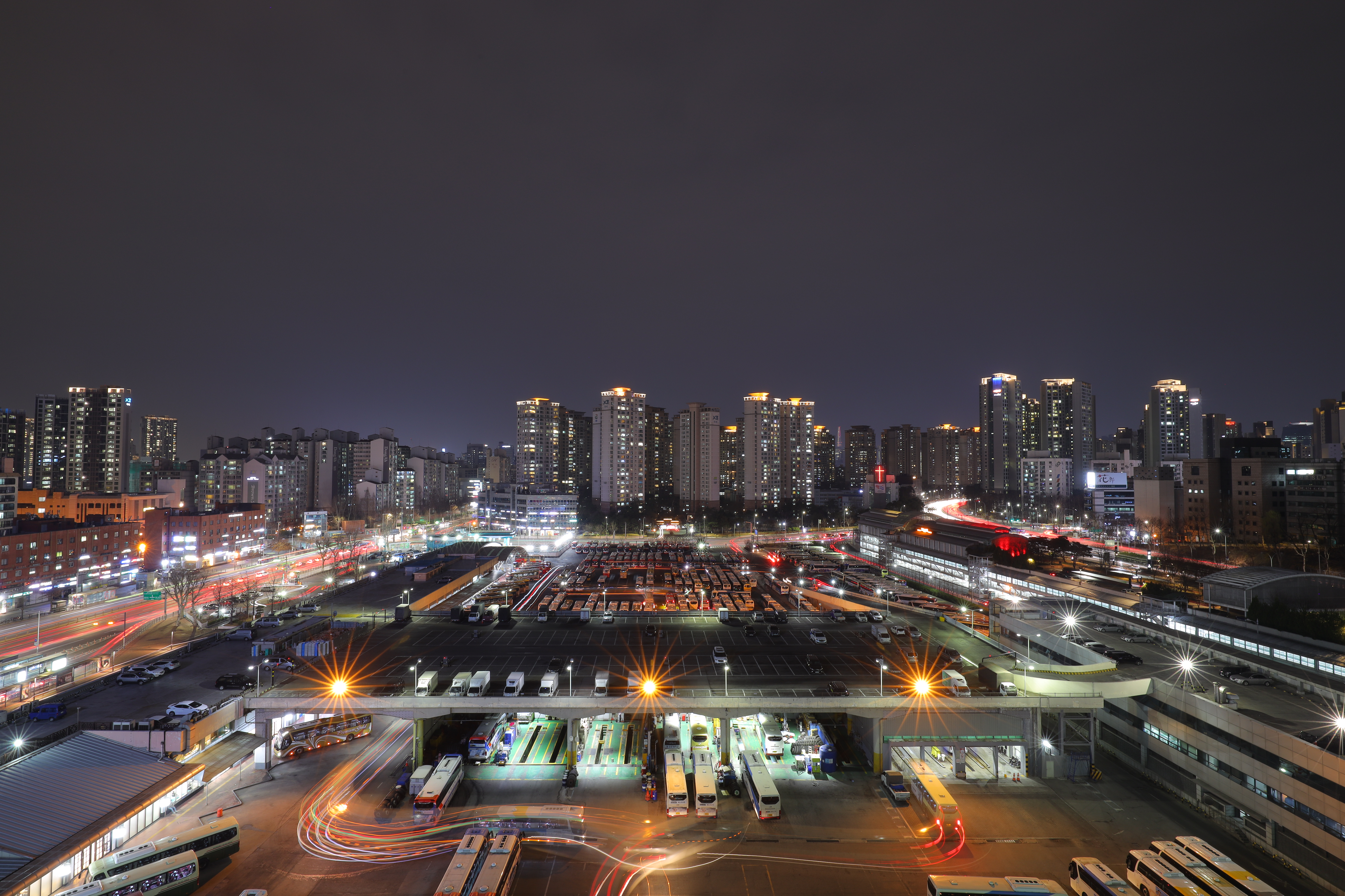 고속터미널 10층에서 바라본 풍경이다. 버스터미널은 우리가 바쁘게 왔다갔다하는 장소인데 이 장소를 가만히 여유롭게 머물러 관찰하면 어떨까 궁금했다.