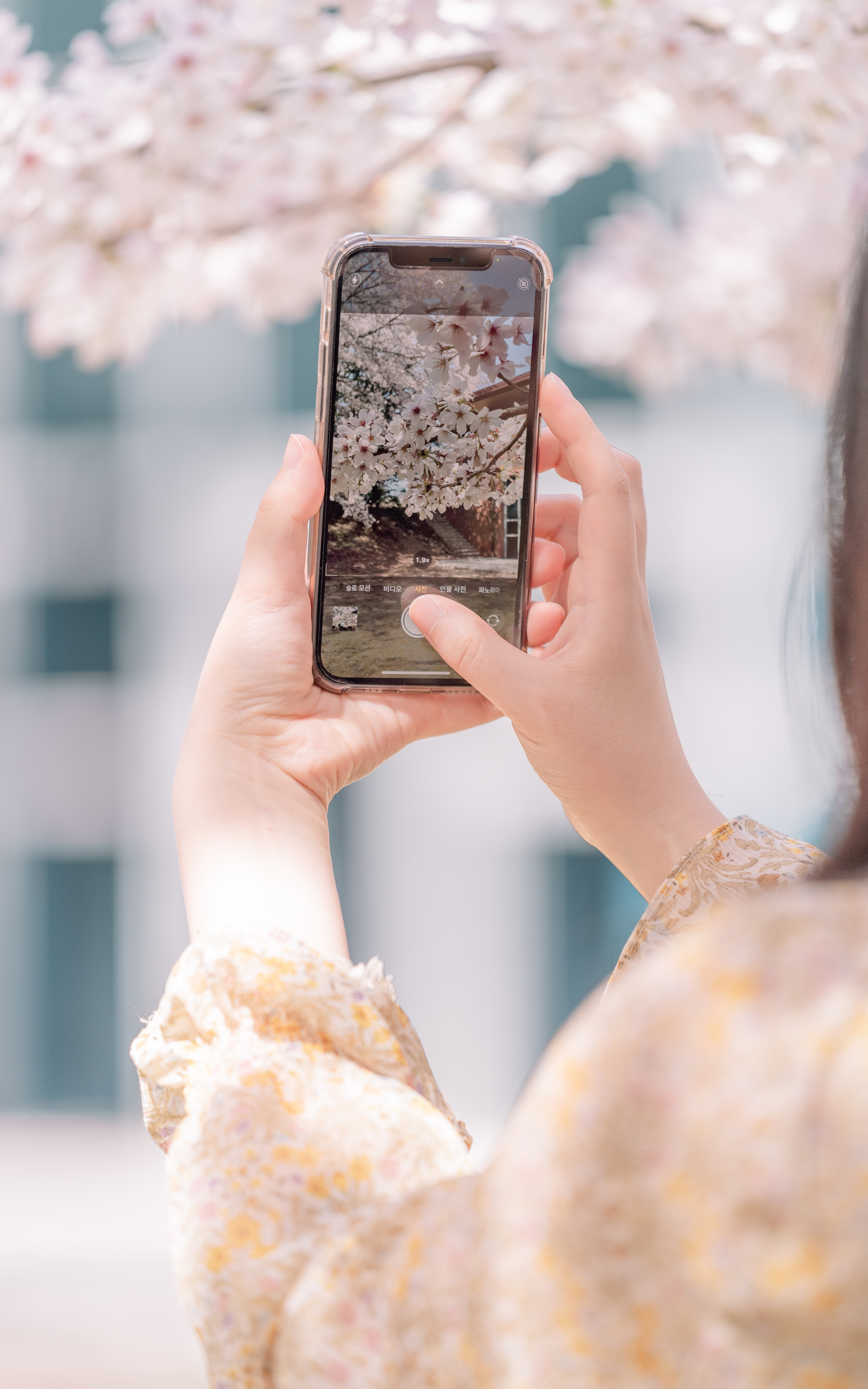 모델님과 함께 봄의 캠퍼스 스냅을 담다가 잠시 담아본 모델님 휴대전화 속의 봄 풍경, 비록 벚꽃은 모두 져버렸지만, 내 손 안에 담긴 봄은 영원하기에.