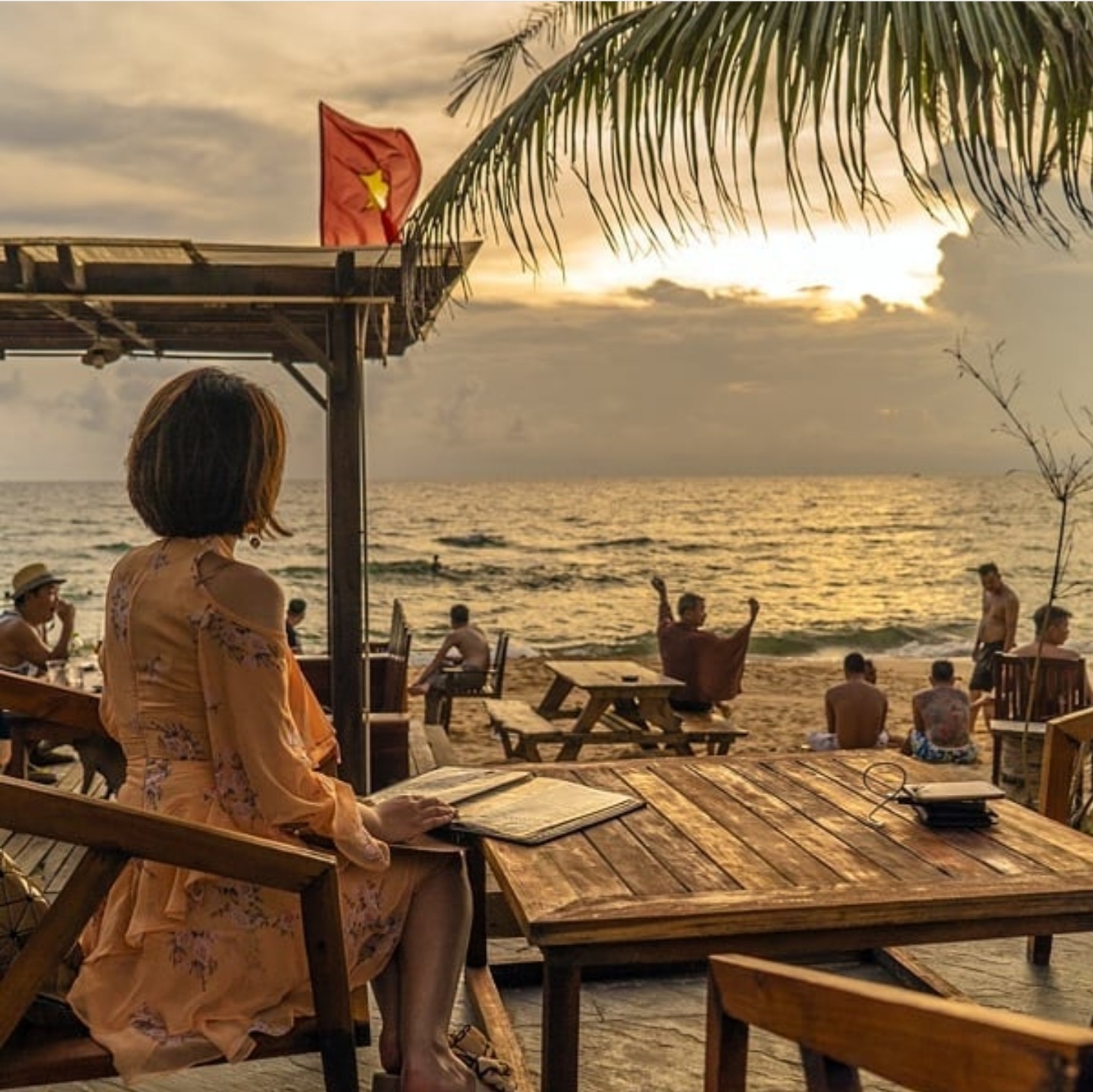푸꾸옥 여행 중 자유로운 사람들과 아름다운 석양