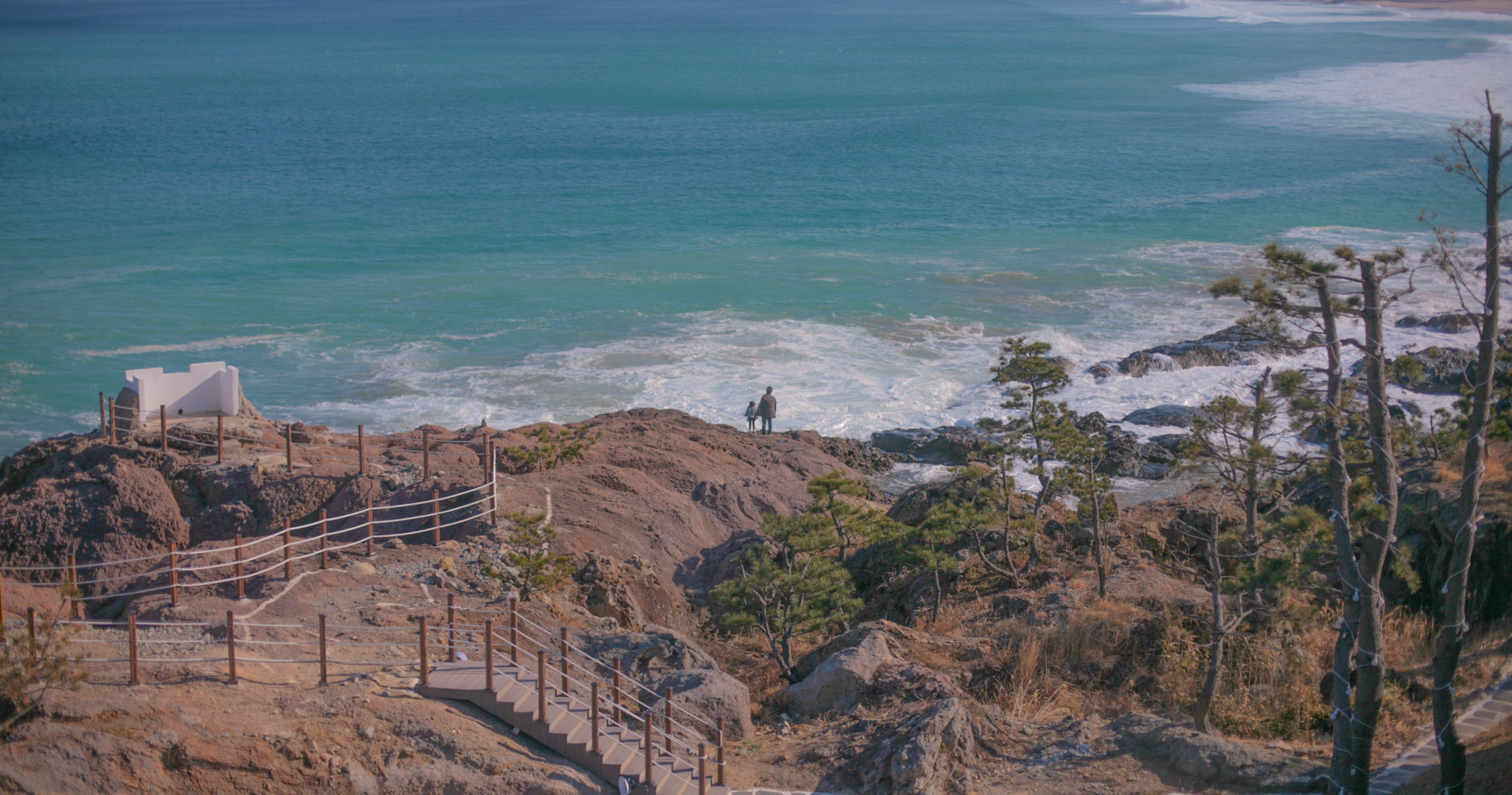 친구랑 같이간 경치가 좋은 카페에 아버지와 딸아이가 손을 잡고 바다를 보고 있는 모습이 너무 좋아서 사진으로 남겼습니다