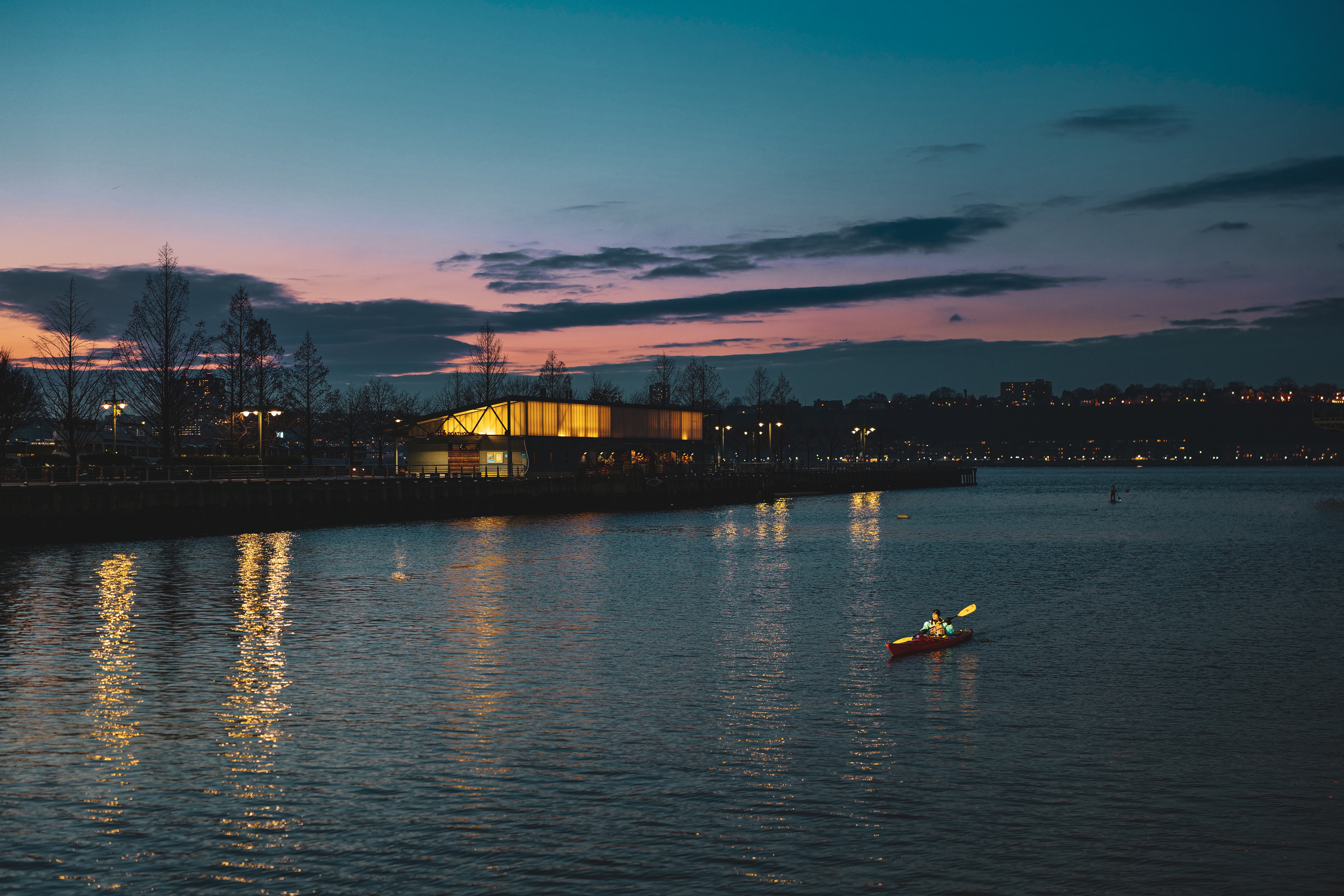 뉴욕 허드슨강의 해가 지는 모습을 담은 사진입니다.