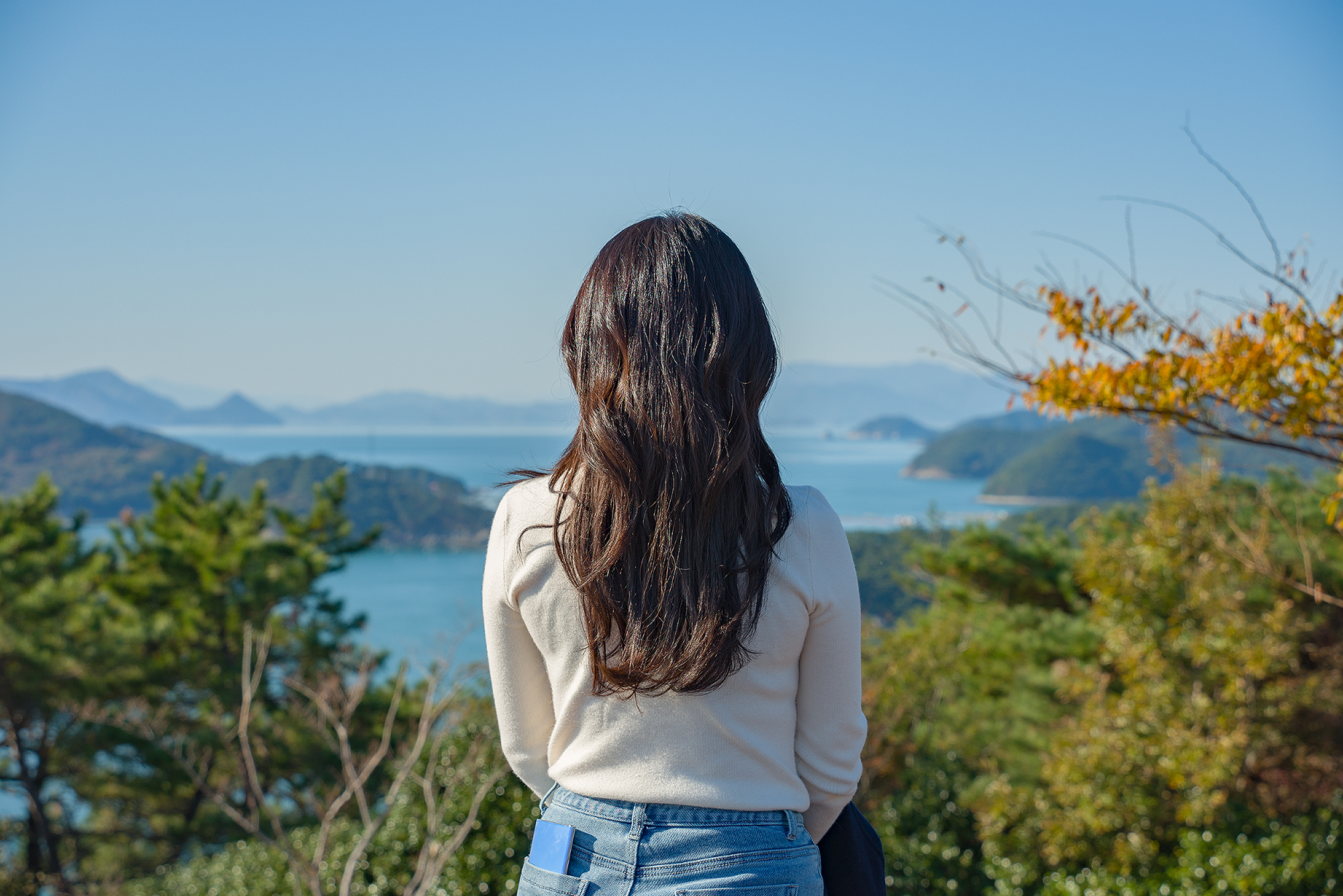 통영 달아공원 정상에서 여자친구를 촬영한 사진입니다
