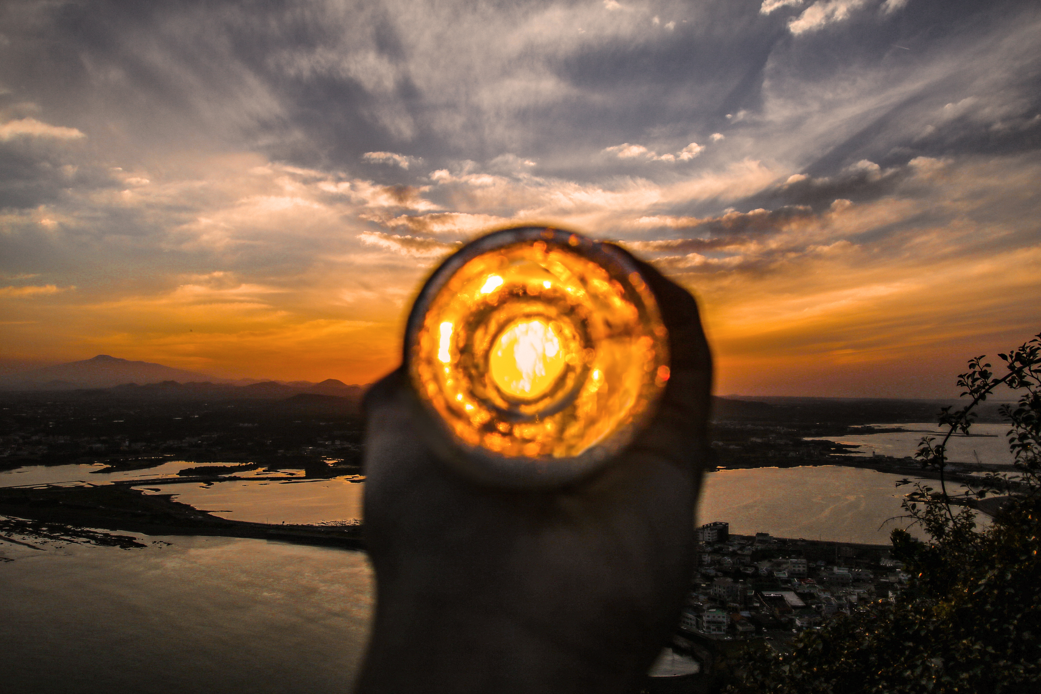 성산일출봉에서 다 마시고 남은 맥주병으로 제주의 일몰을 담아봤습니다~!!