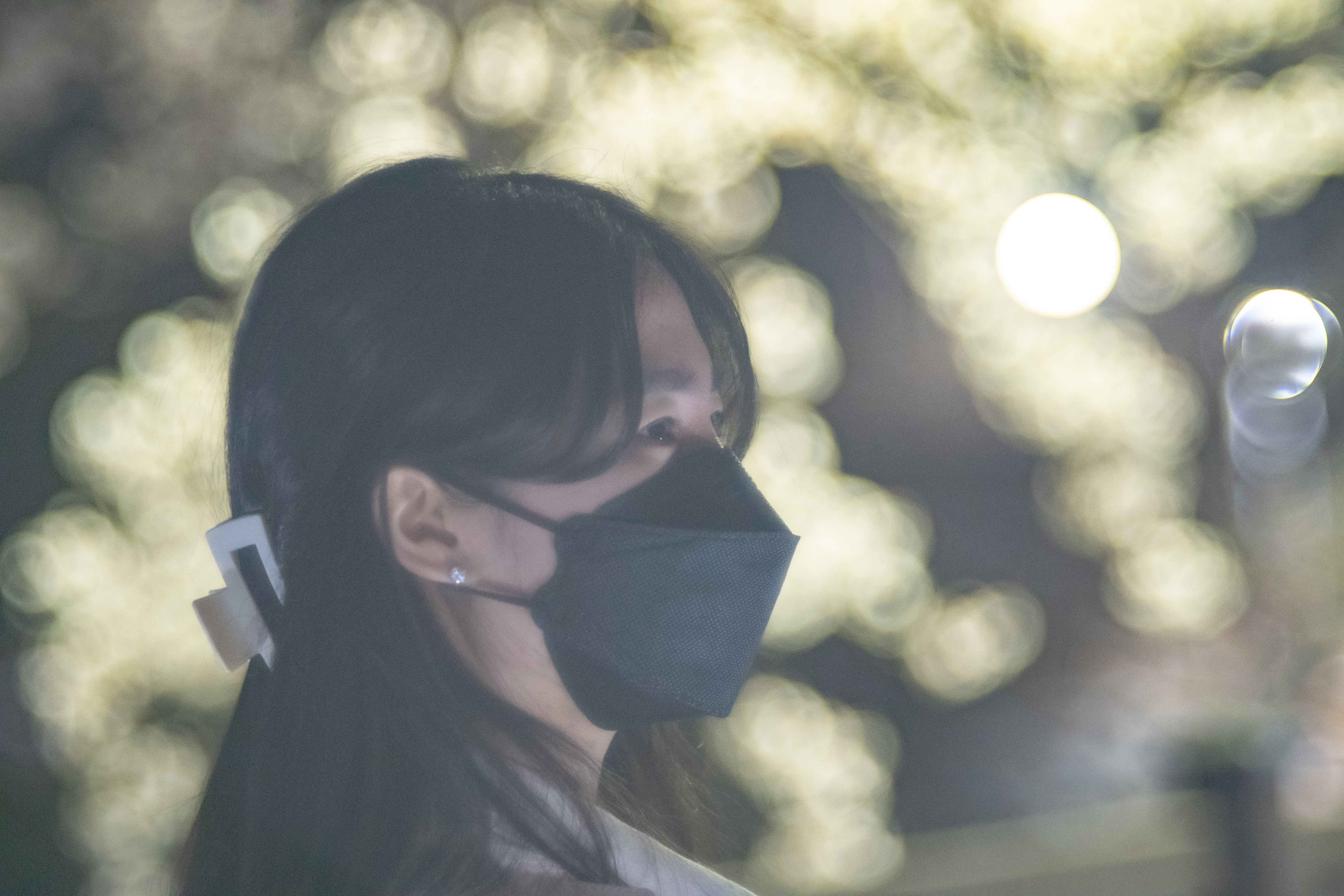 인물의 뒤 벚꽃에 조명이 비치는것을 이용하여 아름다운 보케로 표현하였습니다. 코로나로 인해 마스크를 쓰고 벚꽃을 구경 할 수 밖에 없는 모습을 담았습니다. 렌즈는 Diaplan 150mm f2.8 수동 렌즈를 이용하여 메타데이터에 담기지 않았습니다.