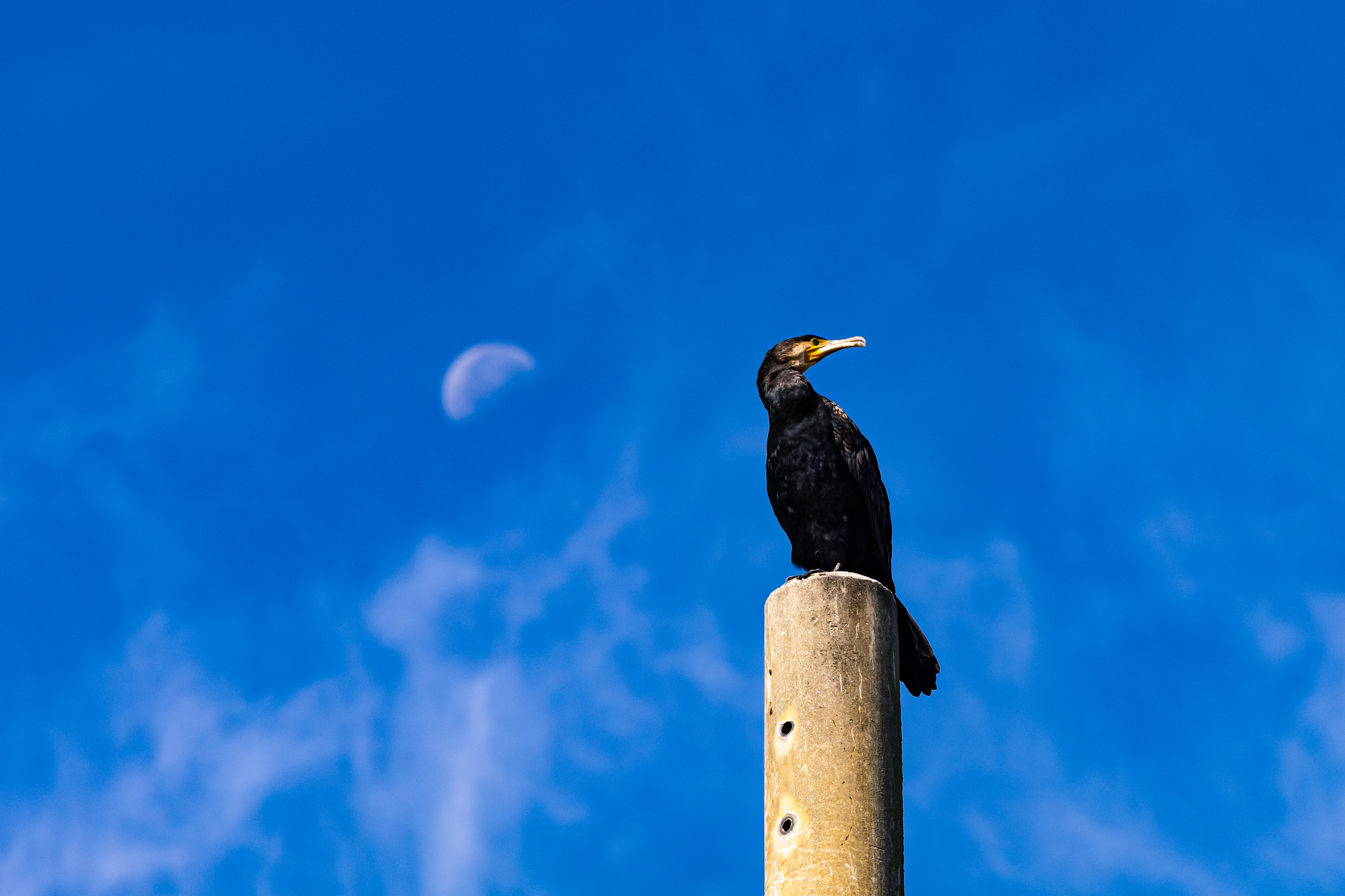 가마우지가 높은 전봇대에서 마치 보초를 서고있는 듯한 모습에