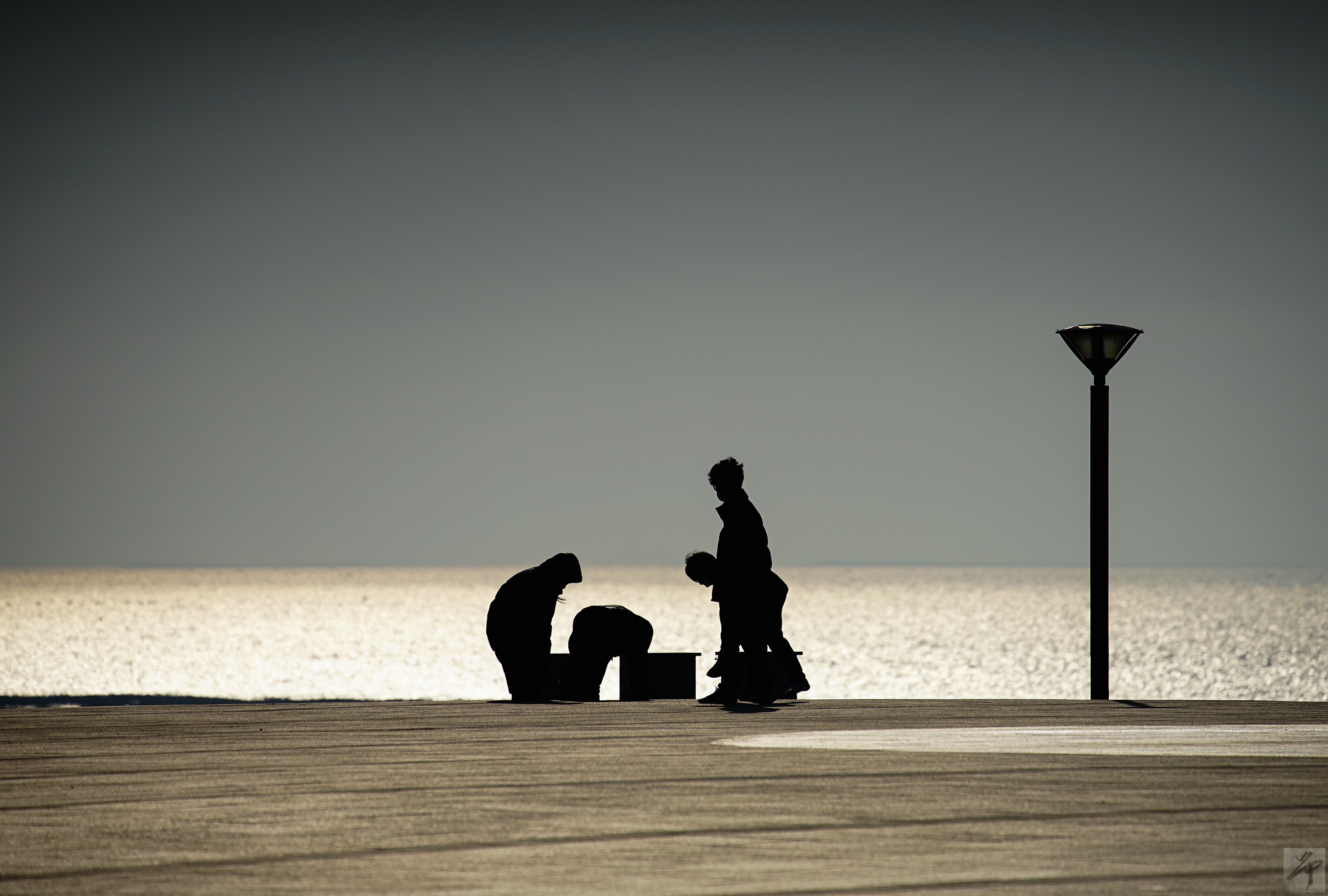 제부도 뻘에서 채취한 조개류의 양을 확인하는 아이들..