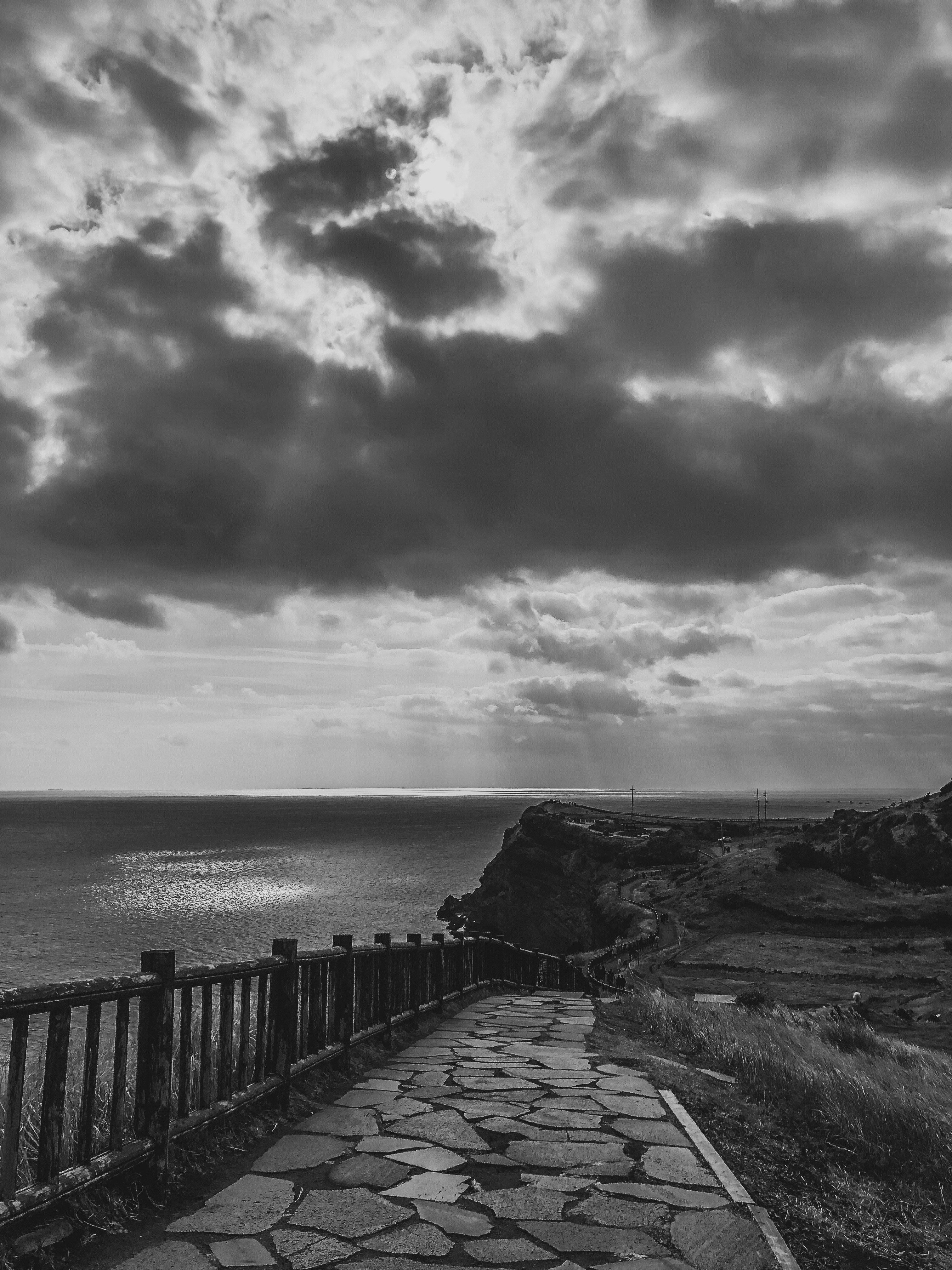 빛내림이 있는 제주 풍경을 흑백으로 담았습니다.