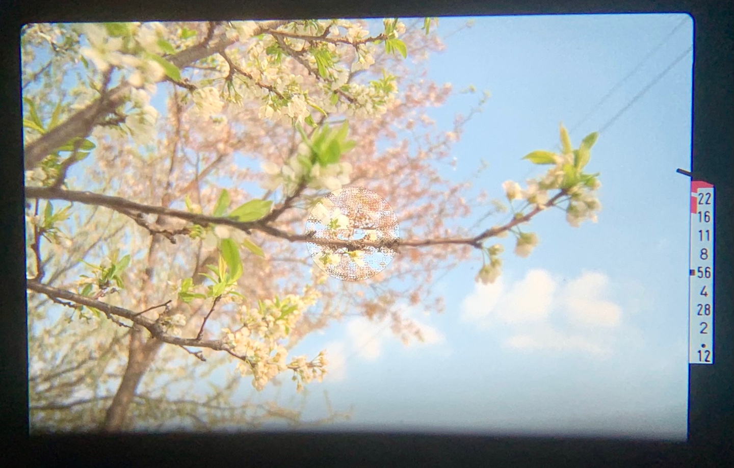 인화된 사진을 보면 촬영할 당시를 회상하며, 즐거워합니다.하지만 뷰파인더를 보면 인화될 사진을 '기대'하며 조심스럽게 셔터를 누르게 됩니다.캐논 AE-1의 뷰파인더.