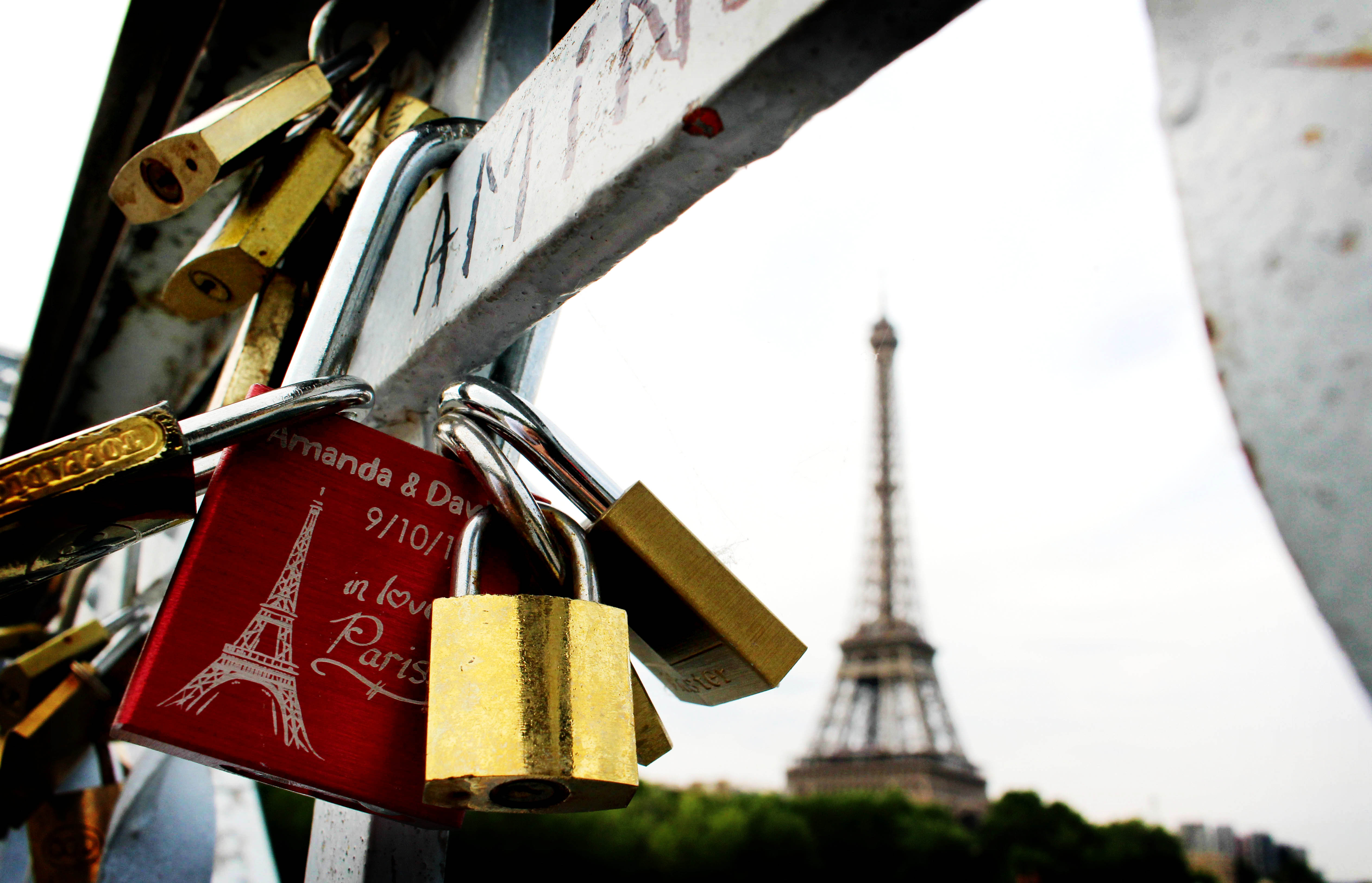 퐁네프에서 바라본 에펠탑과 연인들의 추억을 담은 자물쇠