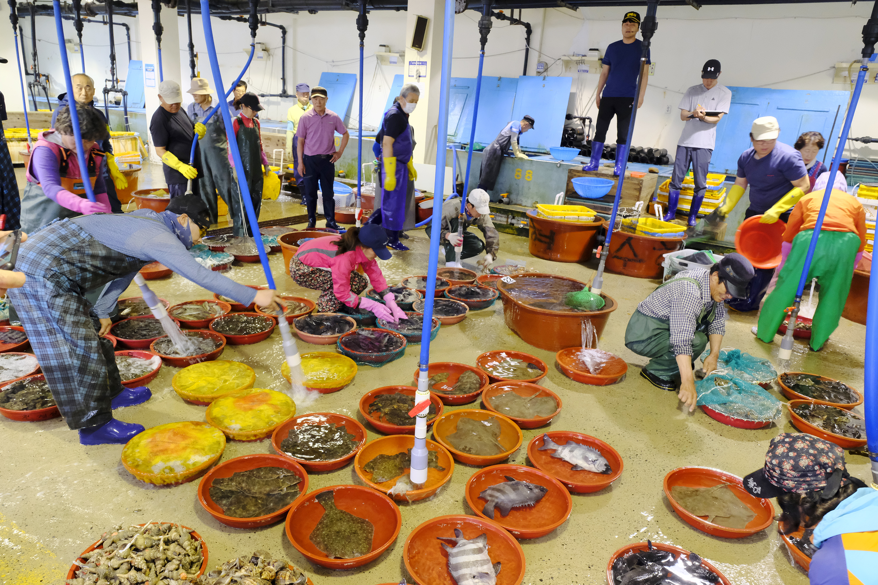 남해 미조항 수산물 경매장의 아침 풍경입니다.