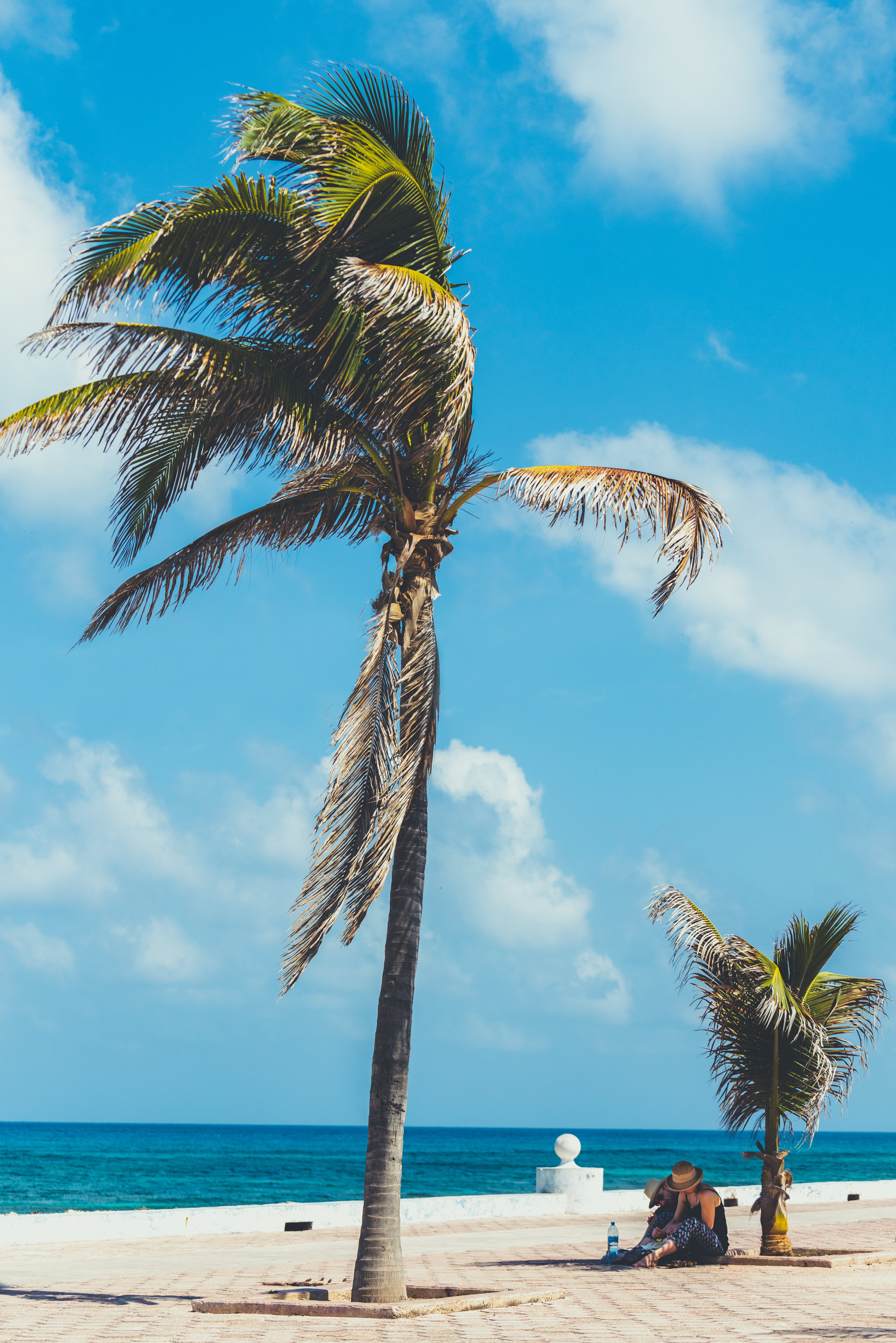 뜨거운 태양을 피해 야자수 밑에 몸을 숨긴 커플