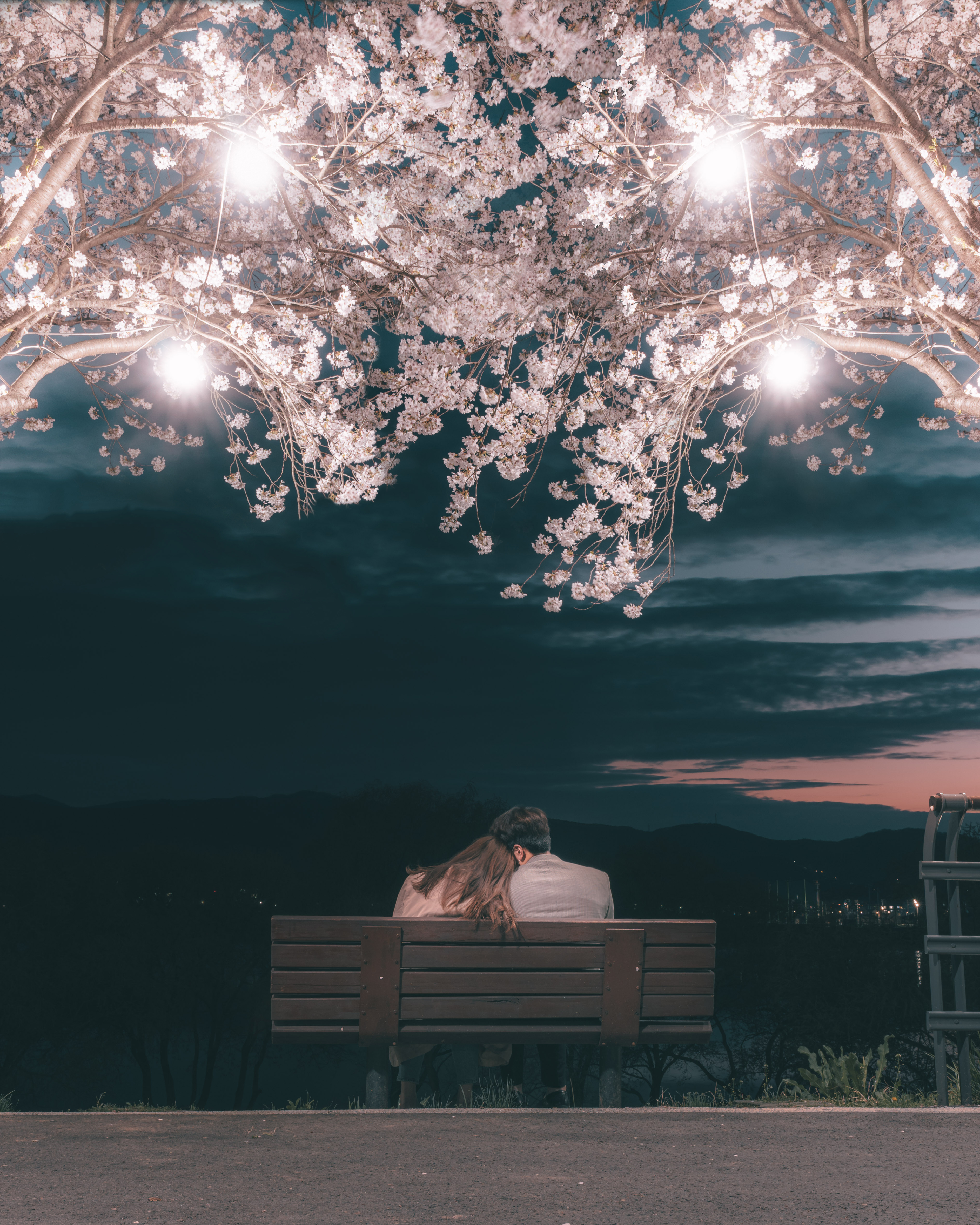 봄의 벚꽃도 우리의 사랑을 보여주듯 하트로 우리를 감싸