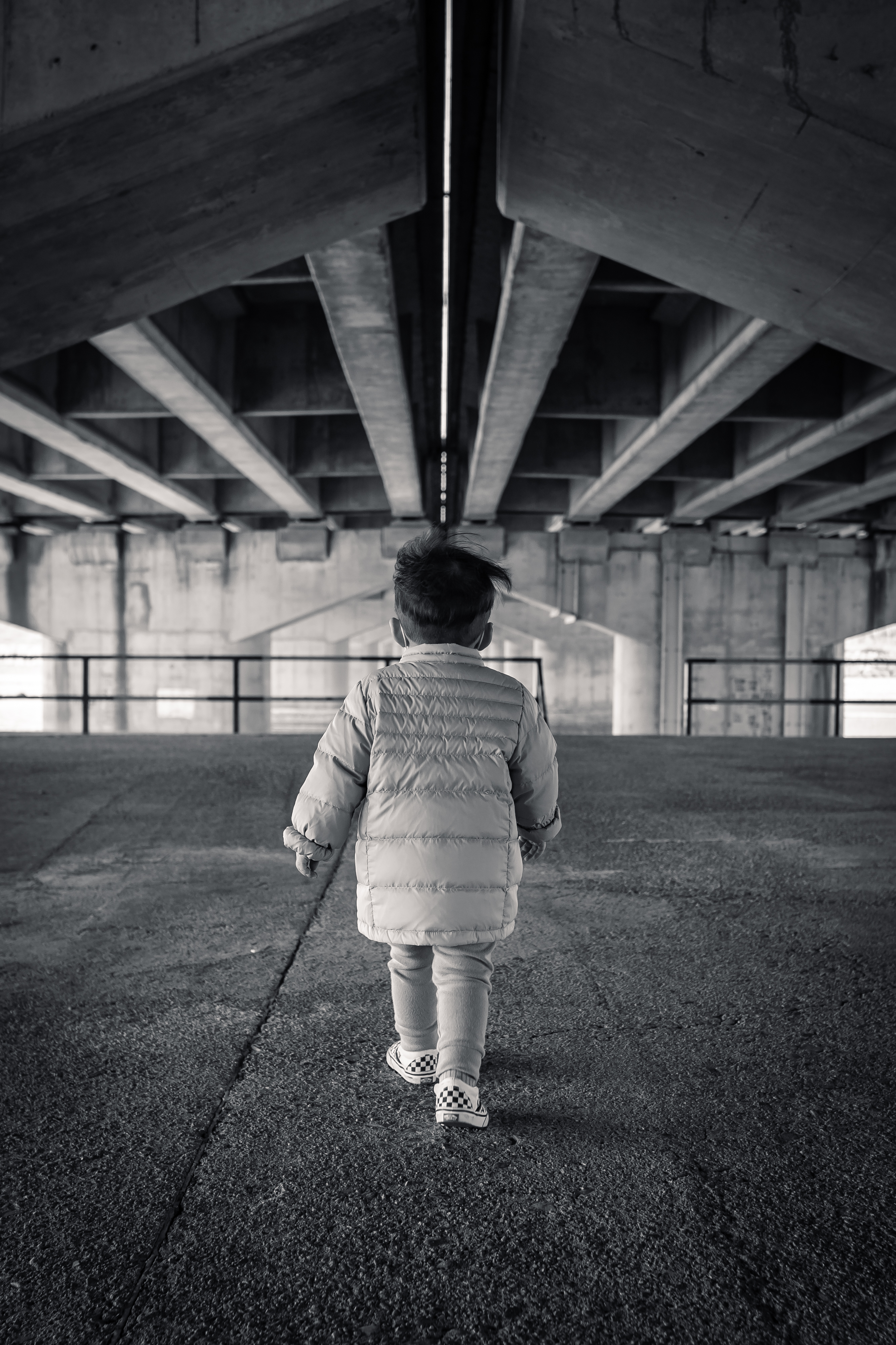 다리 아래를 뛰어가는 아들의 뒷모습을 담았습니다.