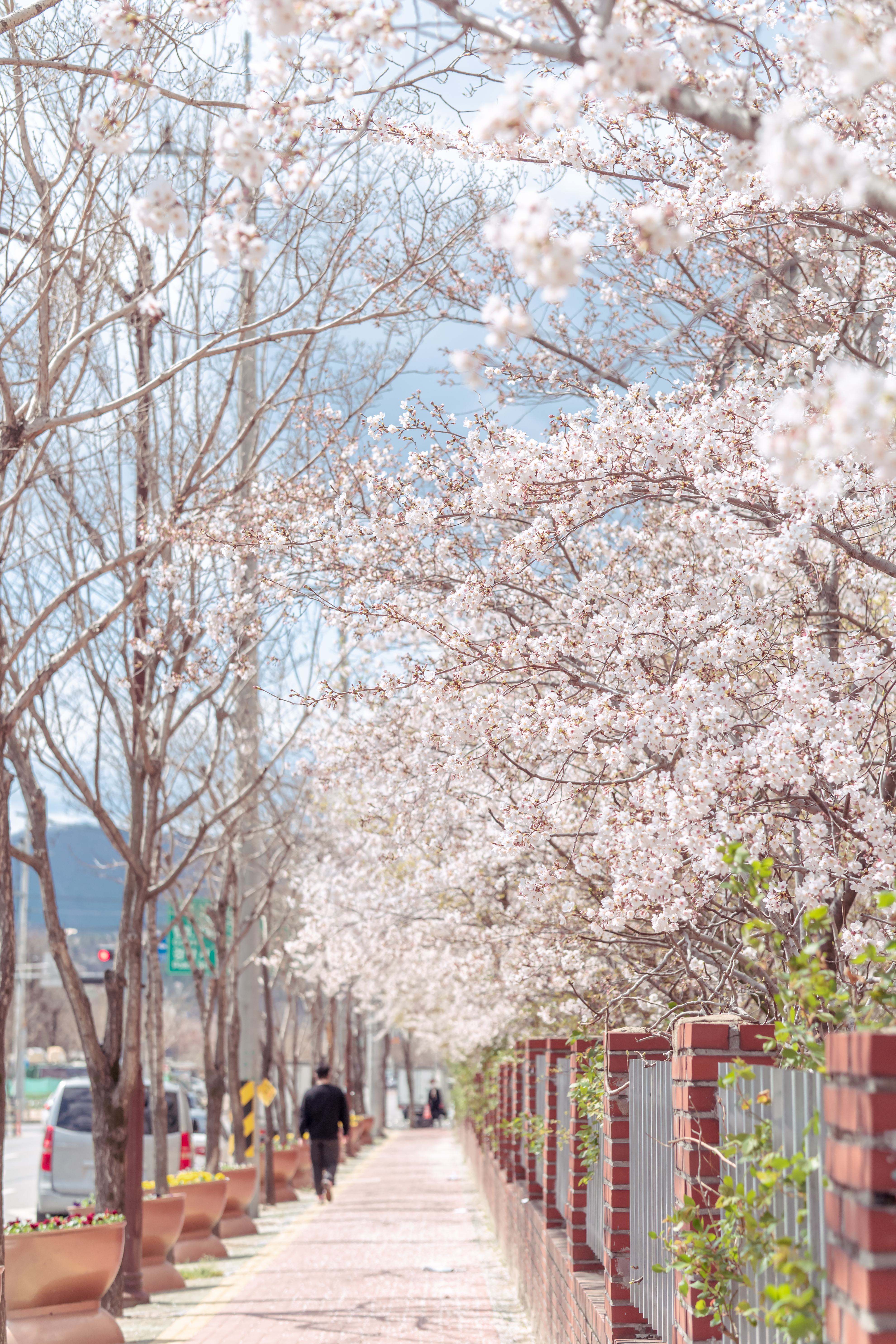 벚꽃이 예쁘게 피어있는 동네의 정경을 담았습니다.